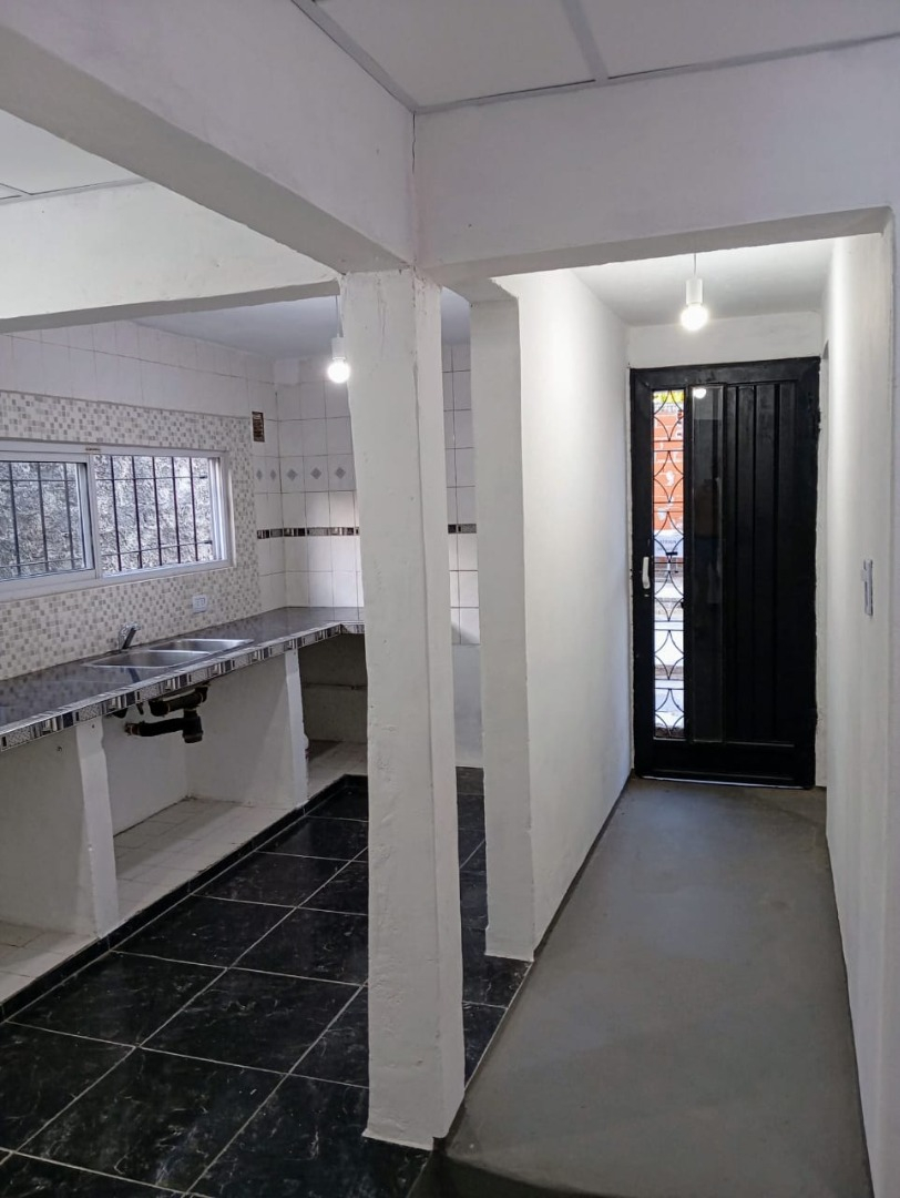 Casa principal de 3 ambientes moderna cuenta con cocina independiente amplia, tiene ventana en todos los ambientes, frente espacioso, de lateral se encuentra cochera descuebierta. En la parte trasera se encuentra el patio compartido con parrilla, y el acceso al departamento de 2 ambientes, que contiene entrada compartida con bacha de cocina, baño y dormitorio. Se encuentra en estado de terminación.