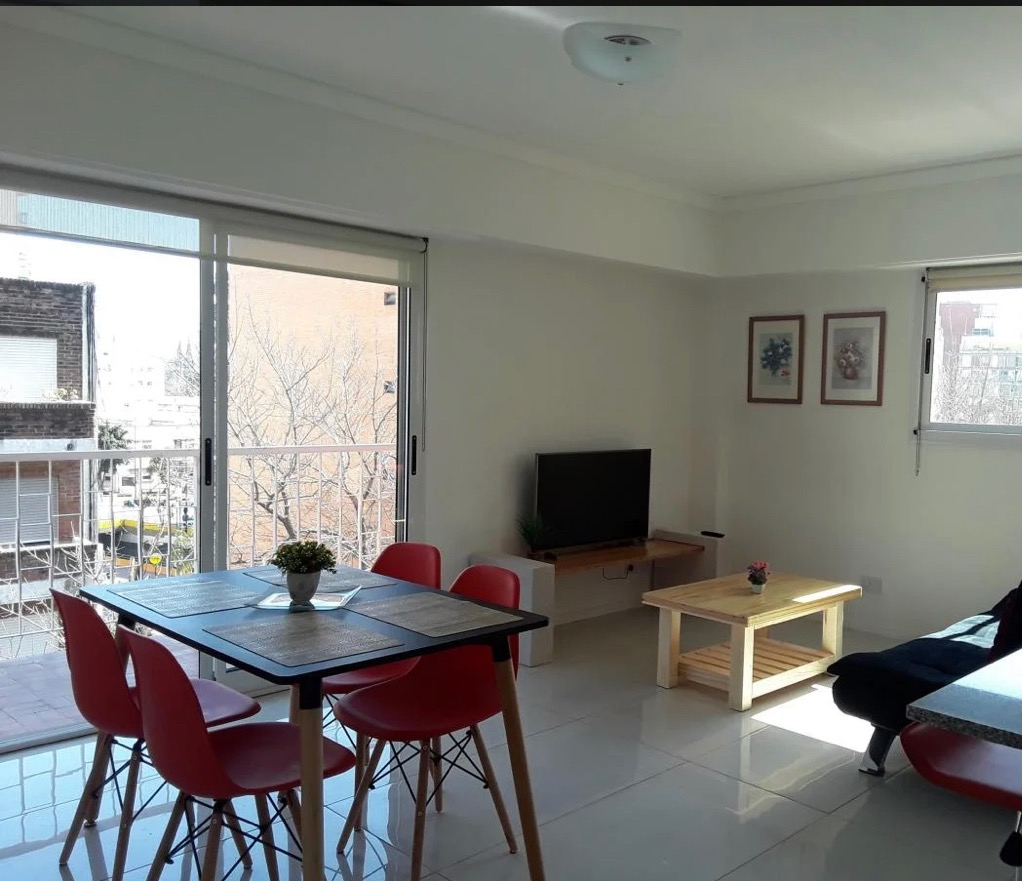 Departamento de dos ambientes, amplio, muy luminoso, con balcón al frente. Living comedor con futón, smart YV de 42', aire acondicionado. Dormitorio con cama Queen, placard, aire acondicionado. Cocina con equipada con horno eléctrico empotrado, heladera con freezer, microondas, anafe vajilla completa, pava eléctrica, tostadora, etc. Lavarropas.