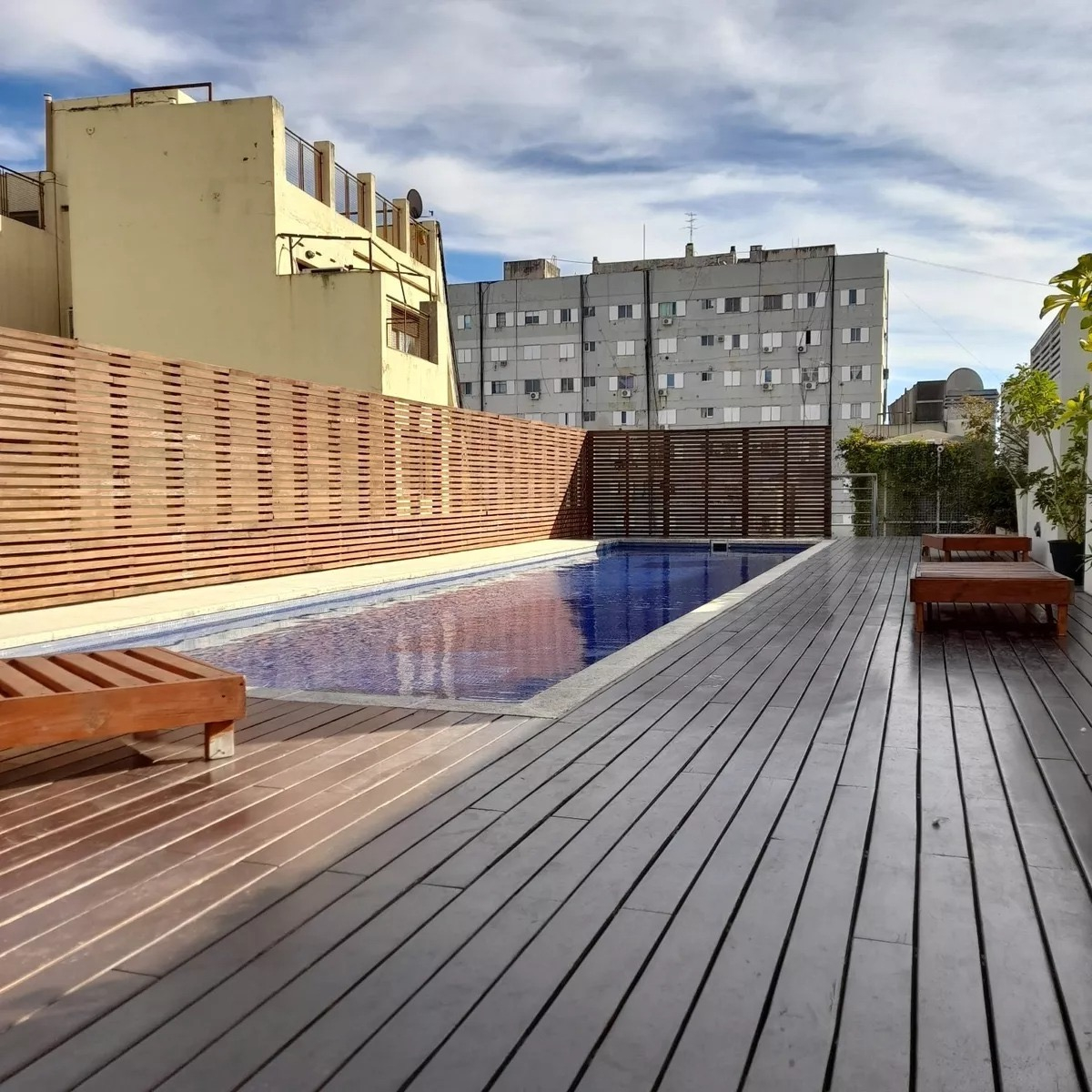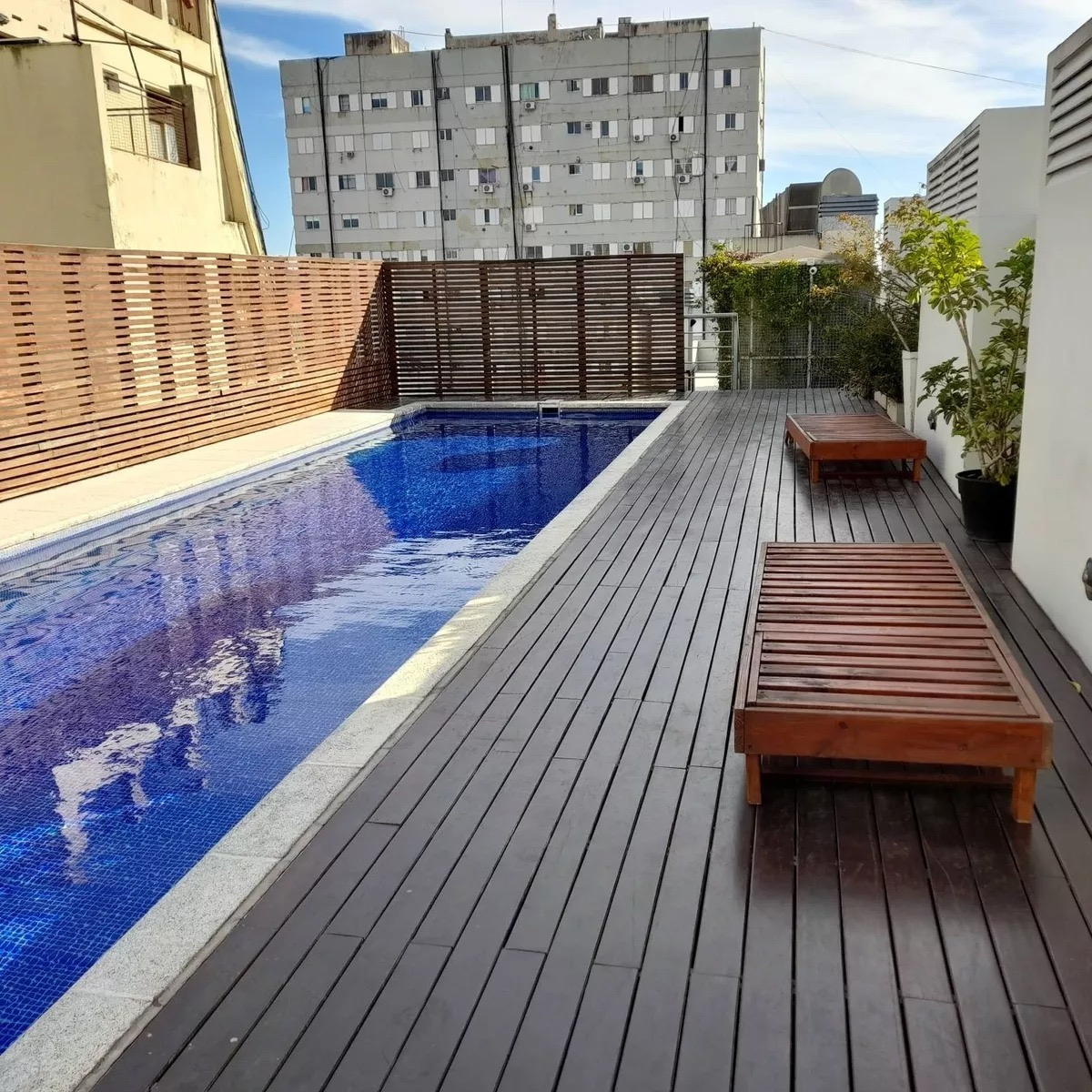 El edificio cuenta con Piscina descubierta. Gimnasio. Sauna. Laundry: lavadoras y secadoras (de pago funcionan con fichas). Parrillas. Sector de mesas y bancos al aire libre. Seguridad 24hs. / Acceso por molinetes / Cámaras en espacios comunes / Rampa de acceso / 5 amplios ascensores/ matafuegos y luz de emergencia.