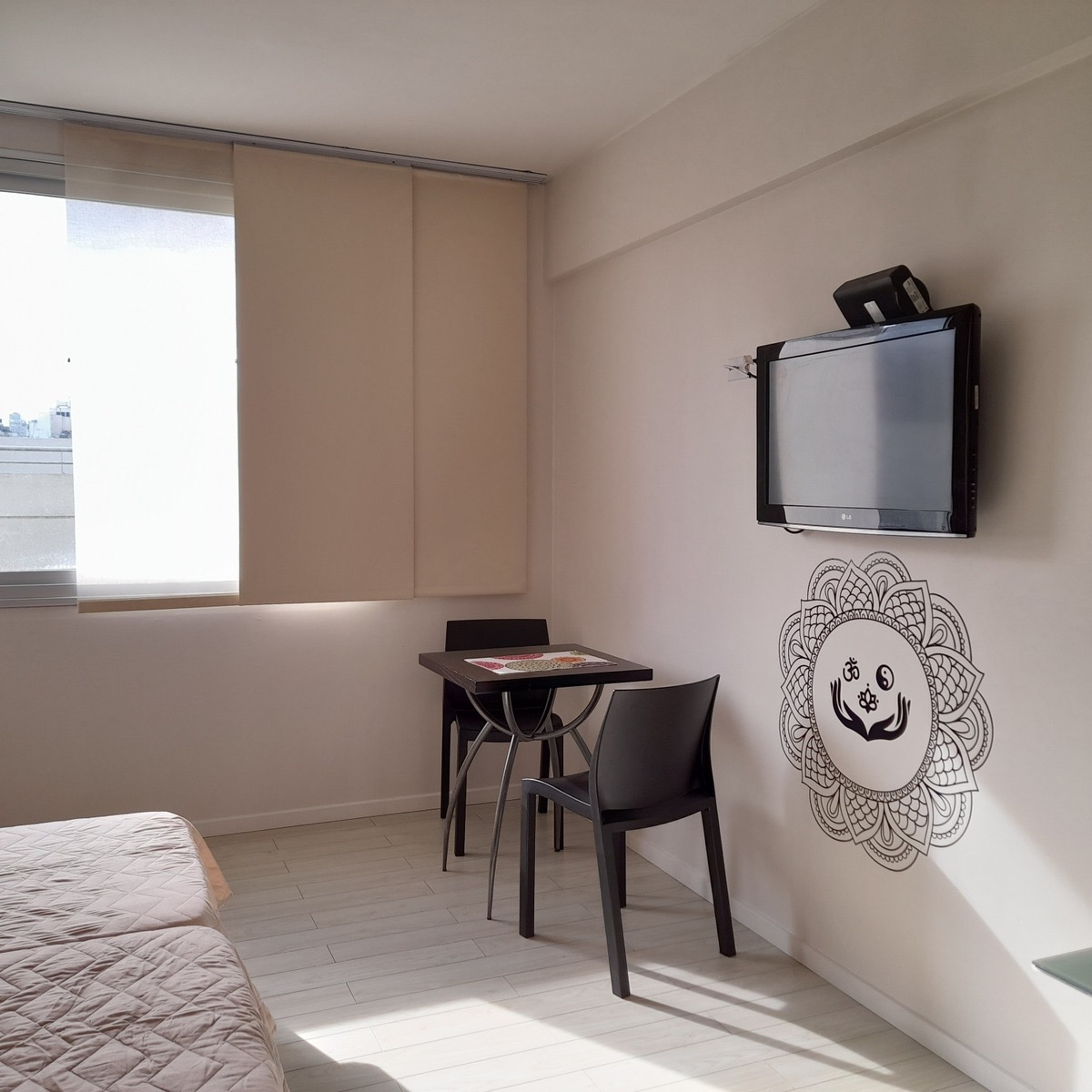 El departamento cuenta con TV Led. Cocina equipada FULL con heladera, horno eléctrico, microondas, anafe, cafetera y pava eléctrica. Vajilla completa. Ropa de cama y Toallas. Aire acondicionado frío/calor. Baño totalmente equipado. Cuenta con 2 camas de una plaza.