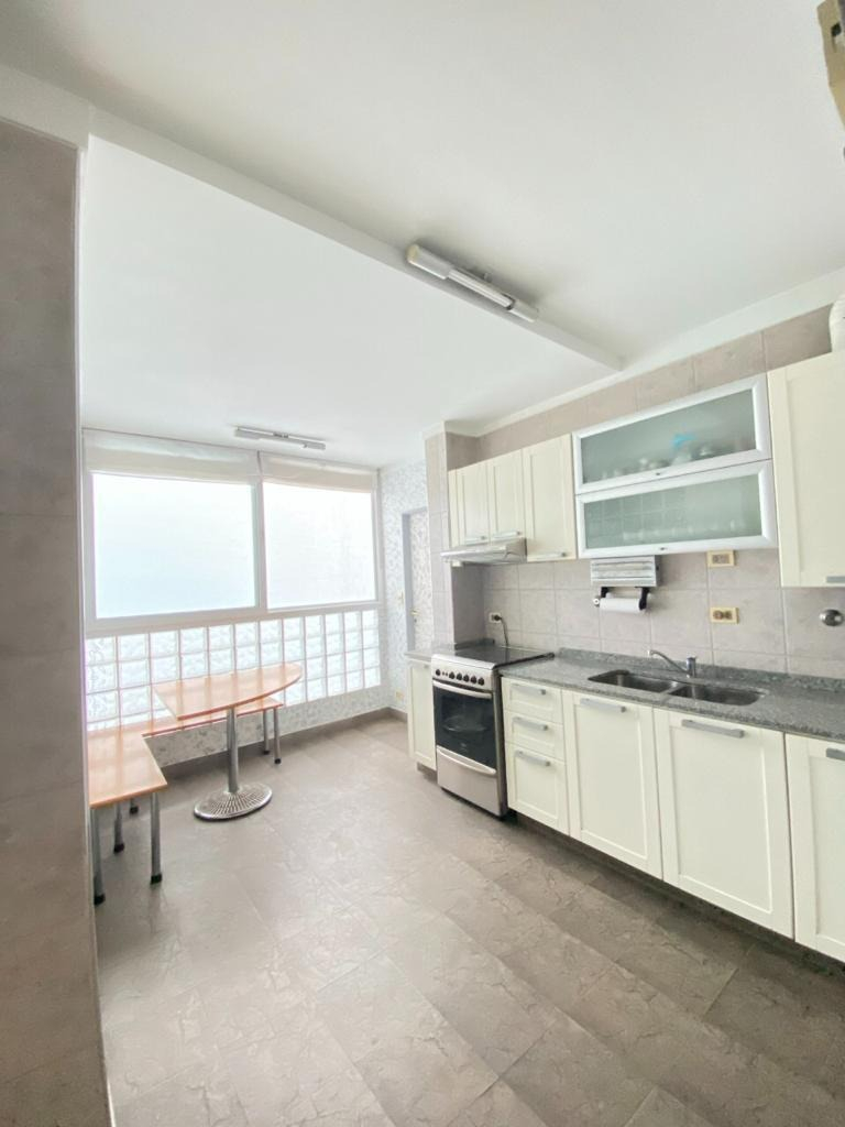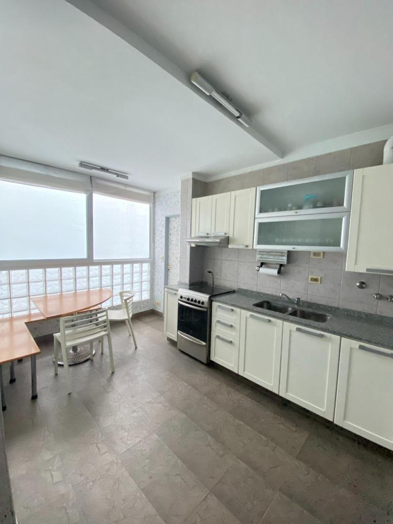 El departamento cuenta con un amplio dormitorio principal con cama matrimonial, un dormitorio secundario con cama individual y escritorio, el tercero con una cama individual, baño completo, amplio living comedor completamente equipado con sofá, mesa comedor de 8 puestos y un mueble con televisor. Cocina amplia totalmente separada y lavadero.