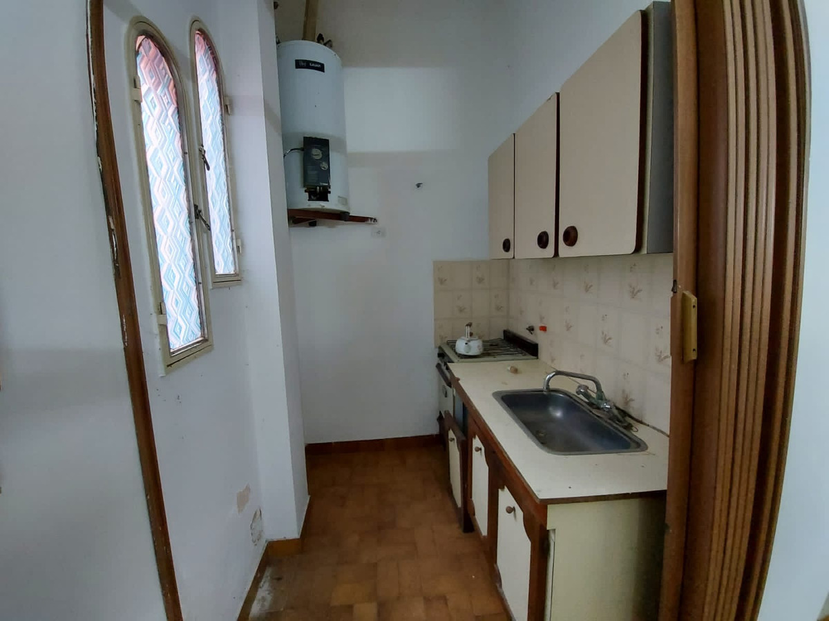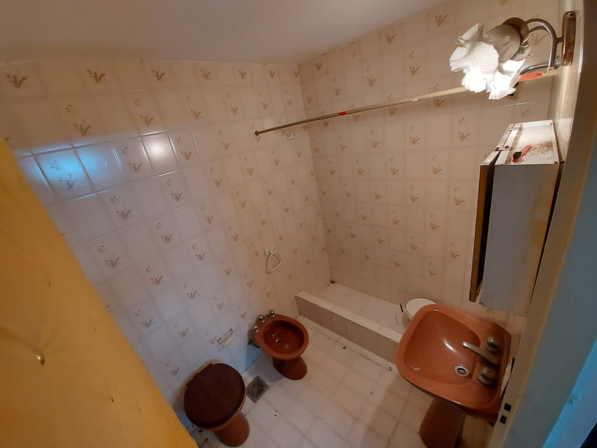 El departamento cuenta con cocina chica, con termotanque, alacena y bajo mesada antigua. Living amplio con pisos de cerámica, pared pintado de color blanco. Habitación amplia con ventada al costado con persianas y vidrio. Baño con ducha, bidé, lava manos, inodoro, botiquín, pisos de cerámicas y azulejos.