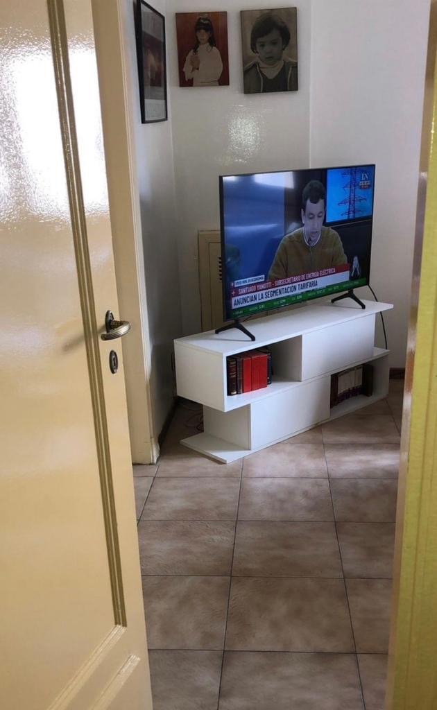El departamento cuenta con living amplio con sillones, mesa ratona, mesa, sillas, cuadros decorativos, pared recién pintadas, pisos de cerámica, veladores, biblioteca con libros, televisión, mesa de TV, ventana. 3 habitaciones con cama de dos plazas y matrimoniales, placard, aire acondicionado. Cocina con heladera nueva con dispensar de agua, cocina de 4 hornallas y horno a Gas Natural, alacena, bajo mesada, tractor de humo, ventilador, utensilios de cocina. vajilla de cristal y plata, lavarropas automático. tres baños con ducha, lava manos, inodoro. No tiene patio ni balcón.
