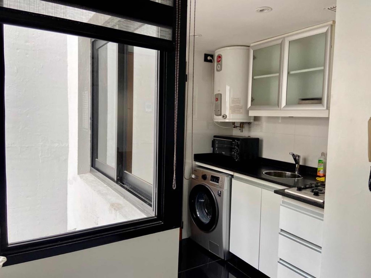 Cocina con anafe, horno eléctrico, lavarropas automático.