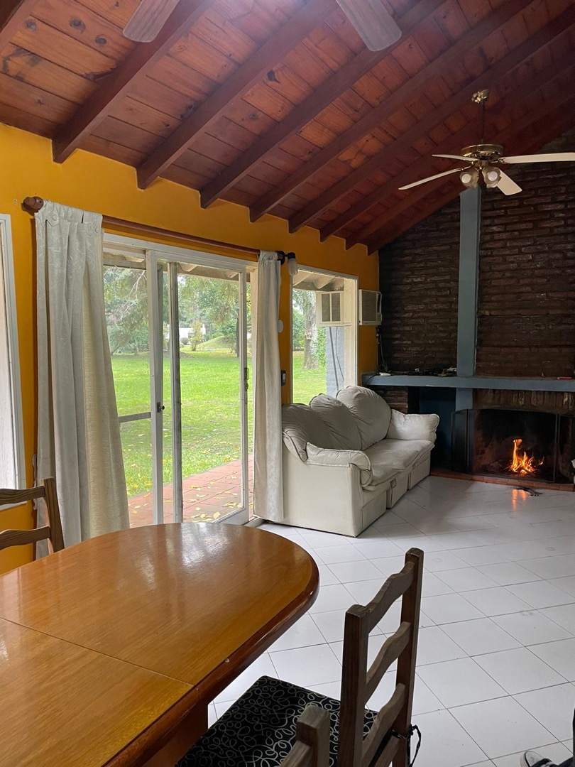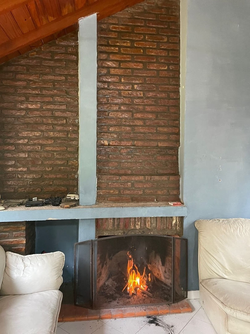 Living con salida al parque con ventanales, cuenta con una estufa hogar. Cocina.