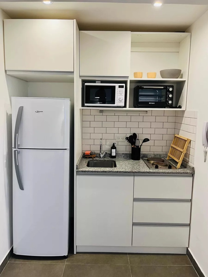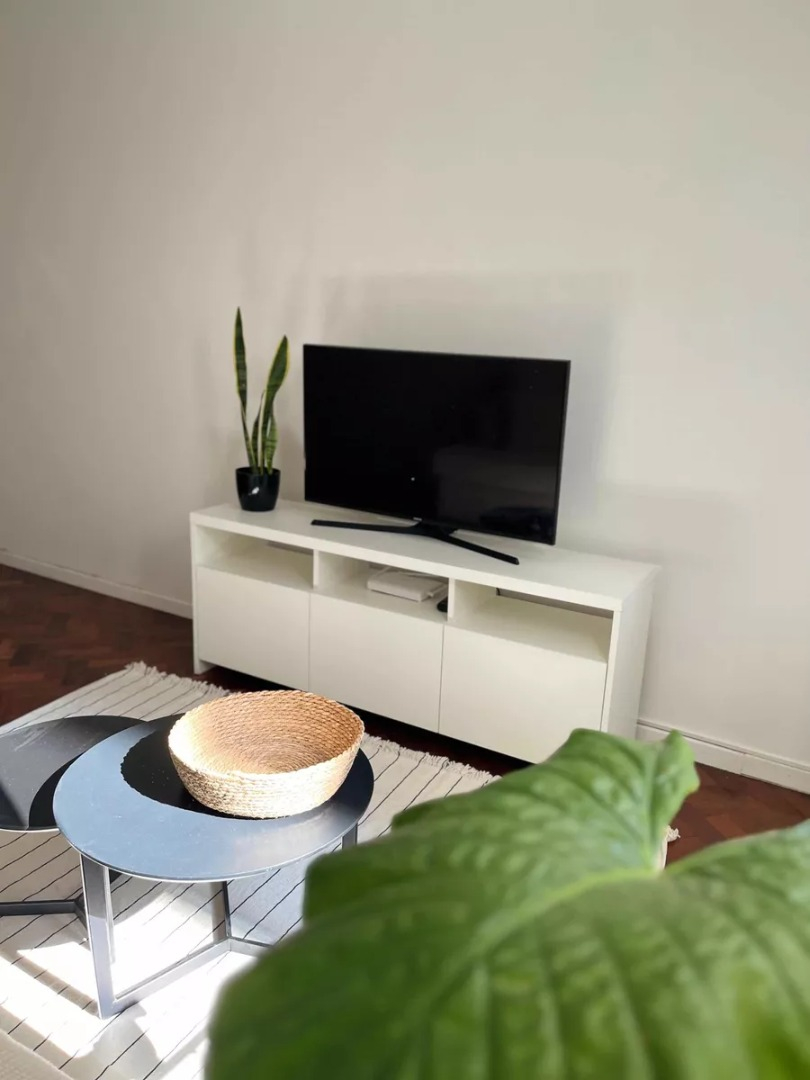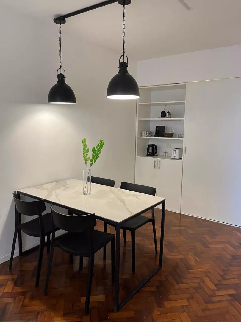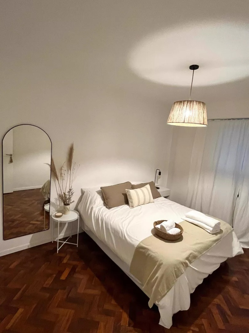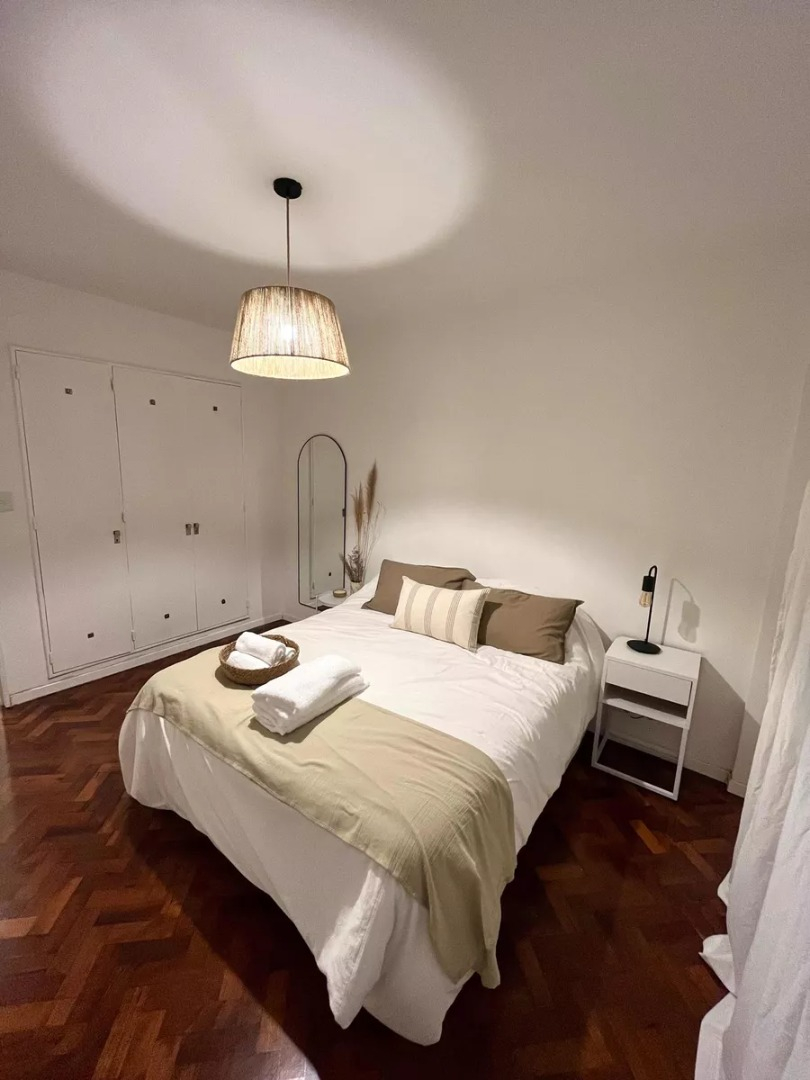 El departamento es muy amplio y luminoso. La cocina está amoblada y completamente equipada con heladera con frizzer, anafe eléctrico, horno eléctrico, microondas, pava eléctrica, tostadora, cafetera Nespresso, utensilios de cocina y vajilla. Tiene además plancha y tabla de planchar. El área de living comedor cuenta con mesa de comedor con cuatro sillas, biblioteca, mesas ratonas, sofá cama, Tv led. El dormitorio cuenta con una cama matrimonial Queen Size, sus respectivas mesitas de luz, espejo en la pared, placard empotrado amplio con mucho espacio de guardado, aire acondicionador, calefacción por radiador. Incluye ropa de cama. El baño es completo, tiene ducha e incluye shampoo, acondicionador, jabón, secador de pelo y toallas. Tiene internet de alta velocidad. Limpieza semanal opcional con cargo extra.