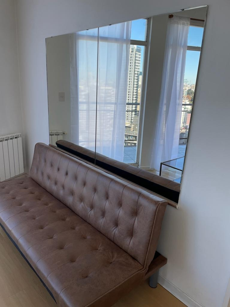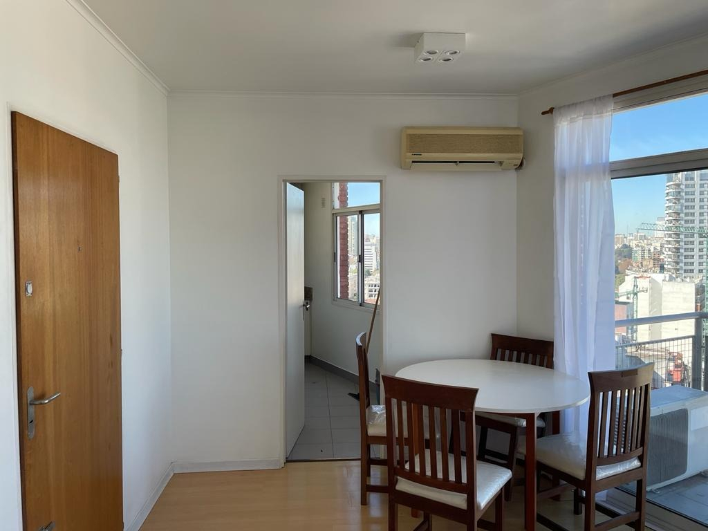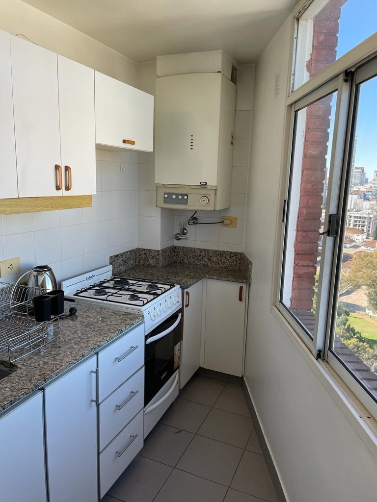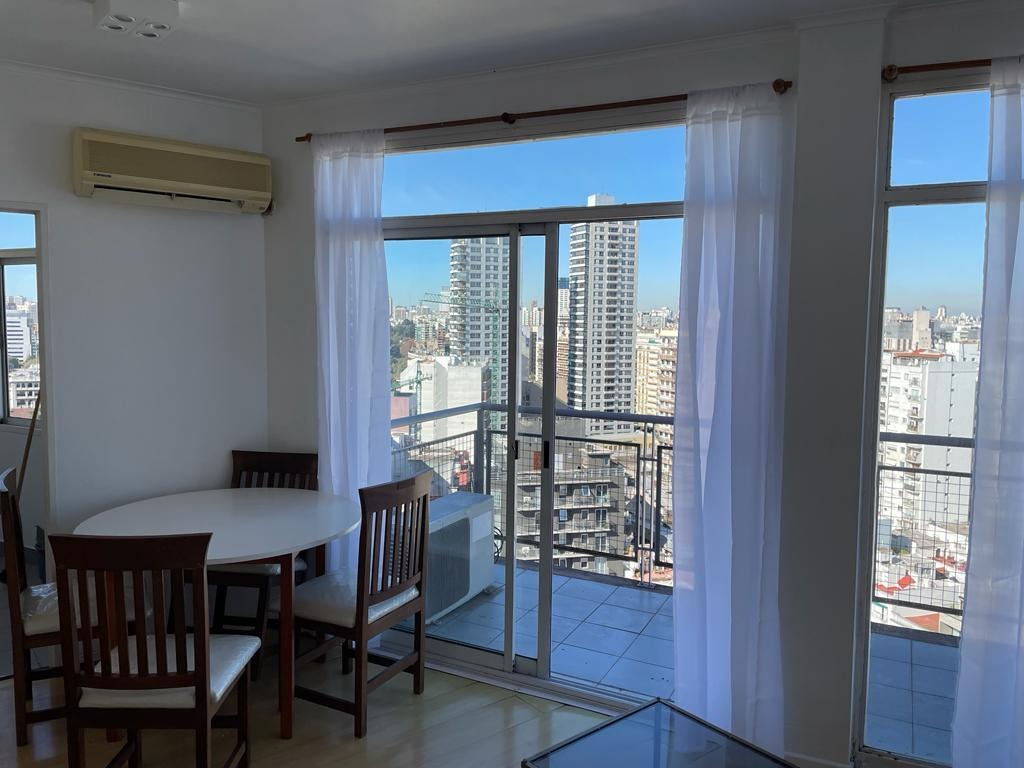El departamento está ubicado en piso alto. Es muy luminoso, tiene muchas ventanas y un amplio ventanal con salida hacia un balcón con vista panorámica de la ciudad. La cocina separada está amoblada con alacena y bajo mesada y completamente equipada con heladera con freezer, cocina a gas, electrodomésticos, utensilios de cocina y vajilla. El living comedor cuenta con mesa de comedor con sillas, sofá cama, mesas de apoyo. El dormitorio cuenta con una cama matrimonial con mesa de luz, TV Led y placard. El baño es completo con bañera. Tiene aire acondicionado.