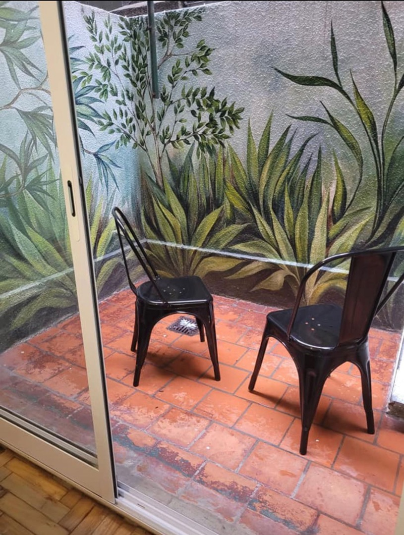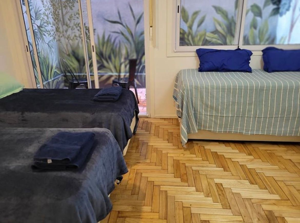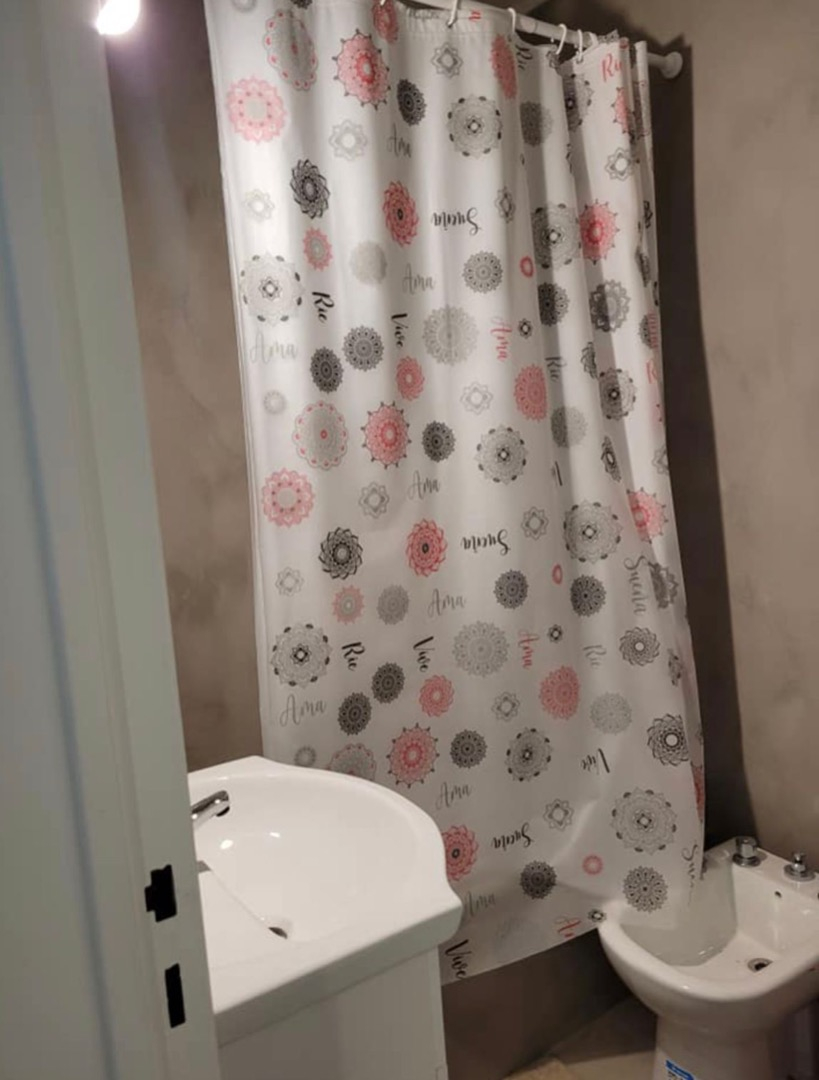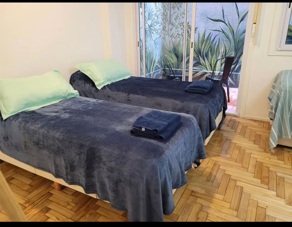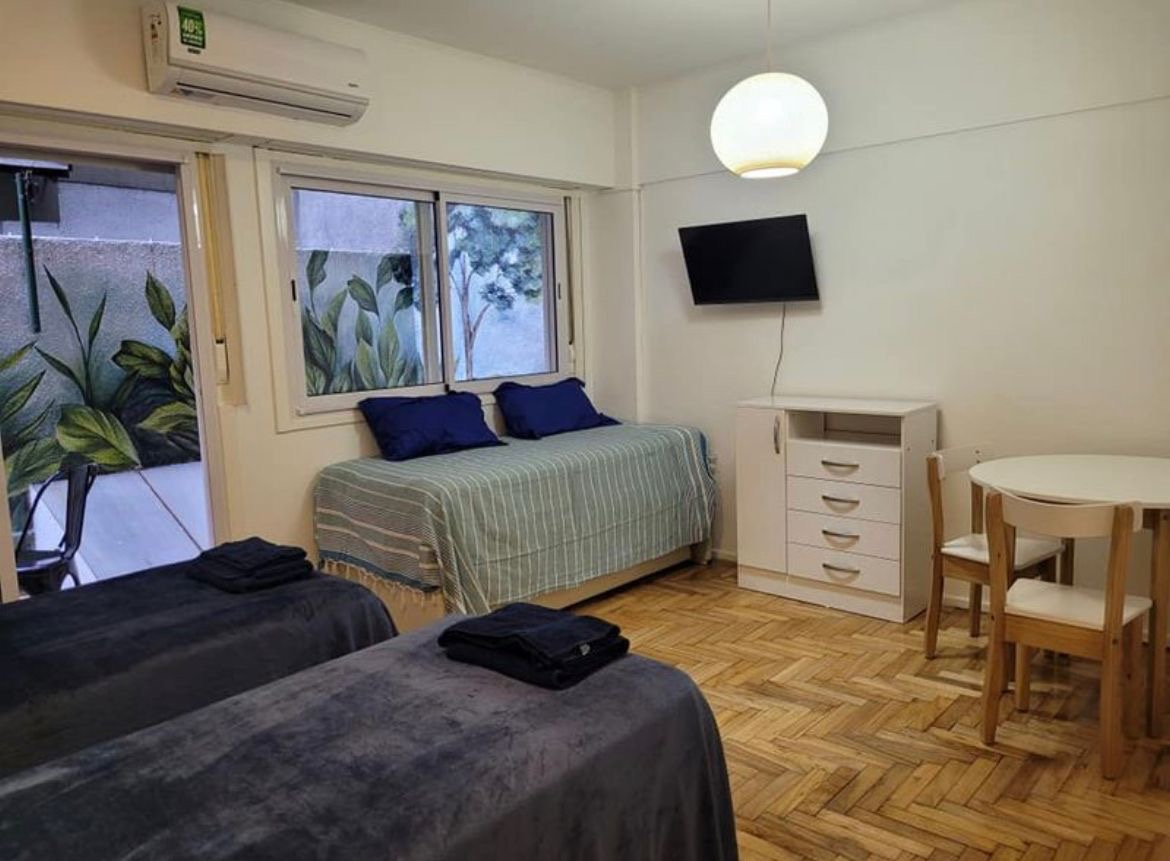 El departamento cuenta con: sector de habitación con cama matrimonial de dos plazas, dos camas de una plaza, con sabanas, acolchados, almohadas, sabanas, pisos de parquet, televisión, mueble, aire acondicionado, mesa con 4 sillas de estilo nórdico ventanal con salida directa al patio amplio con dos sillas, nórdico, sector de cocina con heladera mini bar, microondas vajilla, platos, vasos, anafe, el departamento es todo eléctrico.
