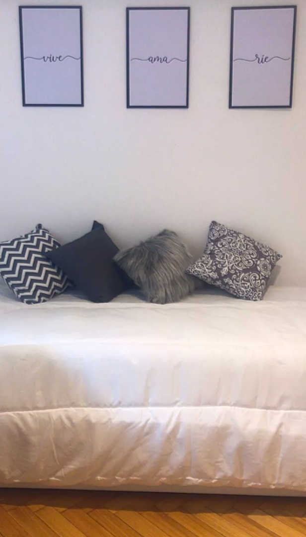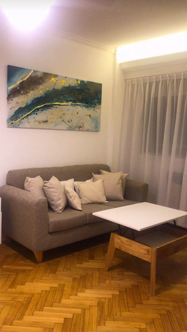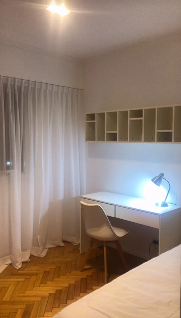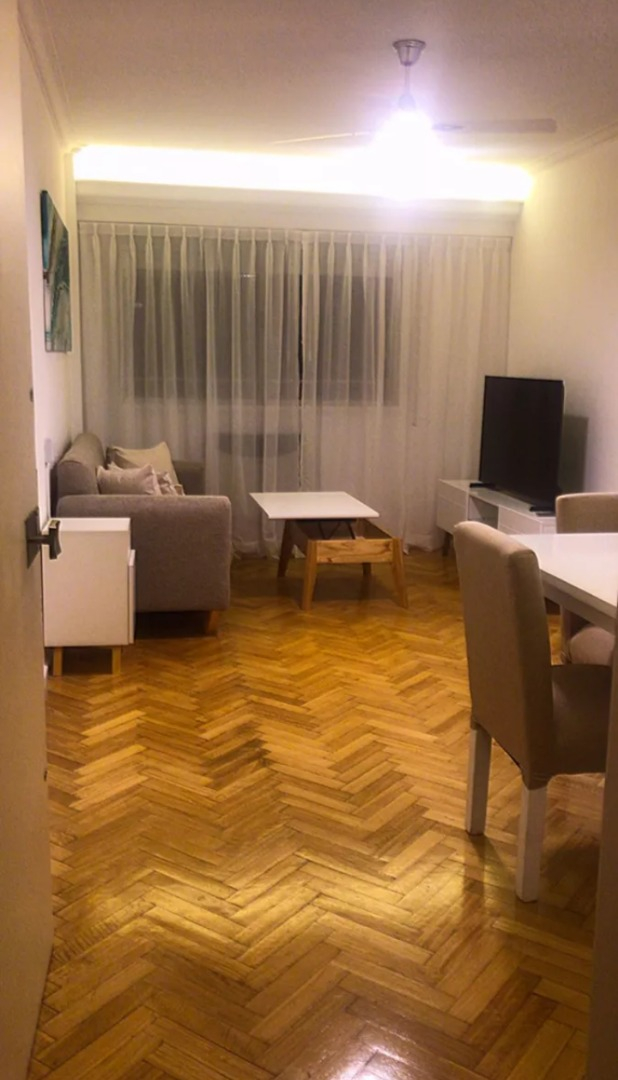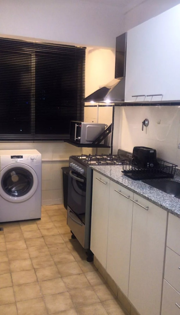 El departamento es amplio y luminoso, reciclado a nuevo. La cocina está completamente amoblada y equipada con heladera con Freezer, cocina a gas, electrodomésticos, utensilios de cocina y vajilla. El living comedor cuenta con sofá, TV led, mesa de comedor con sillas. El dormitorio principal tiene una cama tamaño matrimonial y placard empotrado. El segundo dormitorio tiene una cama individual y escritorio. El baño es completo con bañera. Cuenta con lavadora.