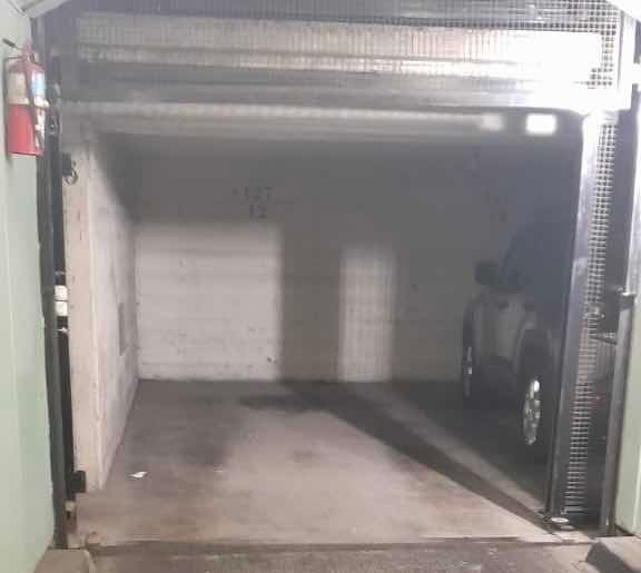 La cochera se encuentra en el primer piso, se accede por medio de auto elevador, cuenta con ascensor, cuenta con baño, es una cochera cubierta para auto estándar, cuenta con rampa ancha, tiene encargado las 24 hs.