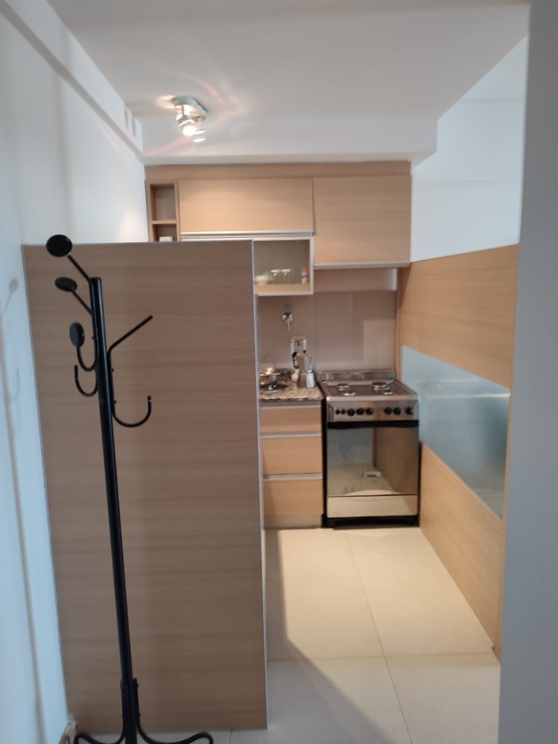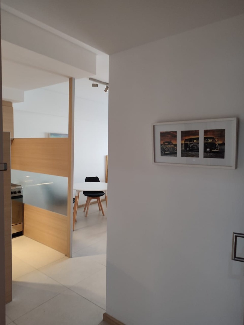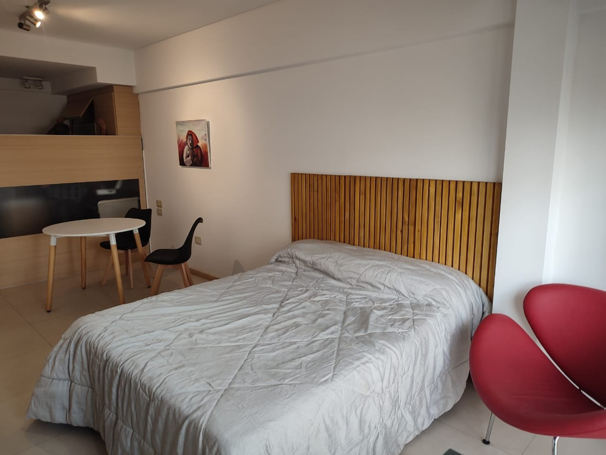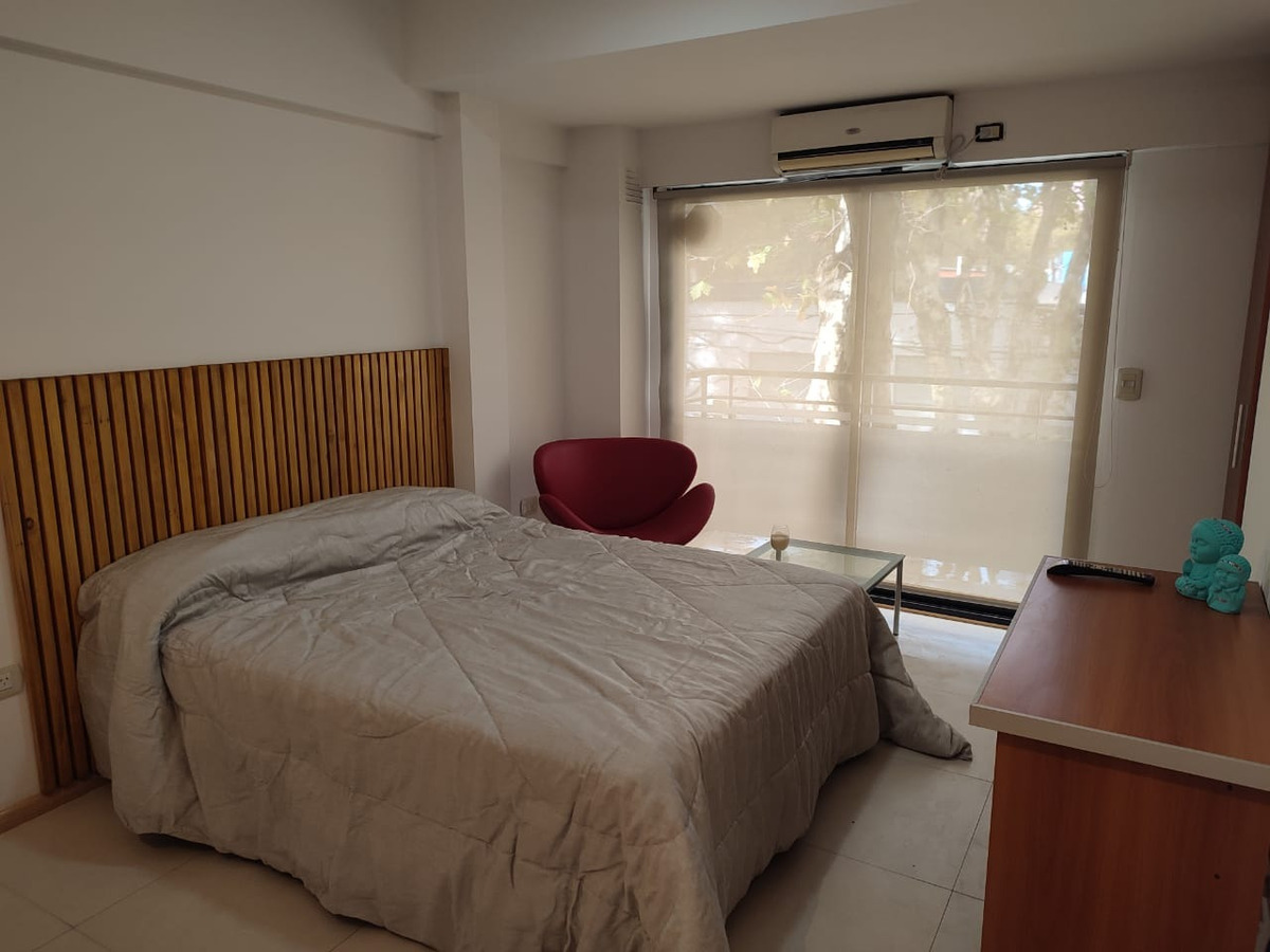 El departamento es muy luminoso gracias a un amplio ventanal con salida a un balcón con vista hacia la calle. La cocina está semi separada amoblada con alacena y bajo mesada completamente equipada con frizzer, cocina a gas, electrodomésticos, utensilios de cocina y vajilla. Cuenta con mesa de comedor con sillas, sillón, mesa ratona, perchero, cómoda con cajones. El baño es completo. Cuenta con aire acondicionado frío/calor. Incluye ropa de cama y toallas.