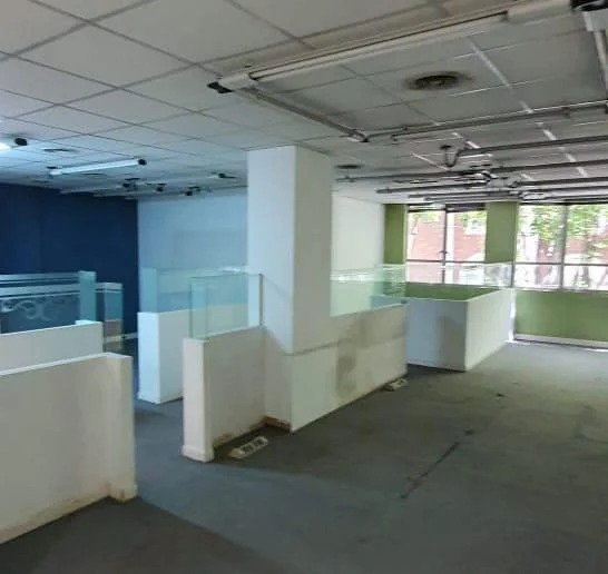 En la planta baja nos encontramos con un local a la calle que posee una vidriera de 5 mts aproximadamente. Tiene espacios de trabajo amplios, dos despachos también espaciosos y dos baños completos. Tiene muy buena luminosidad. La medida del local es 196 m2.