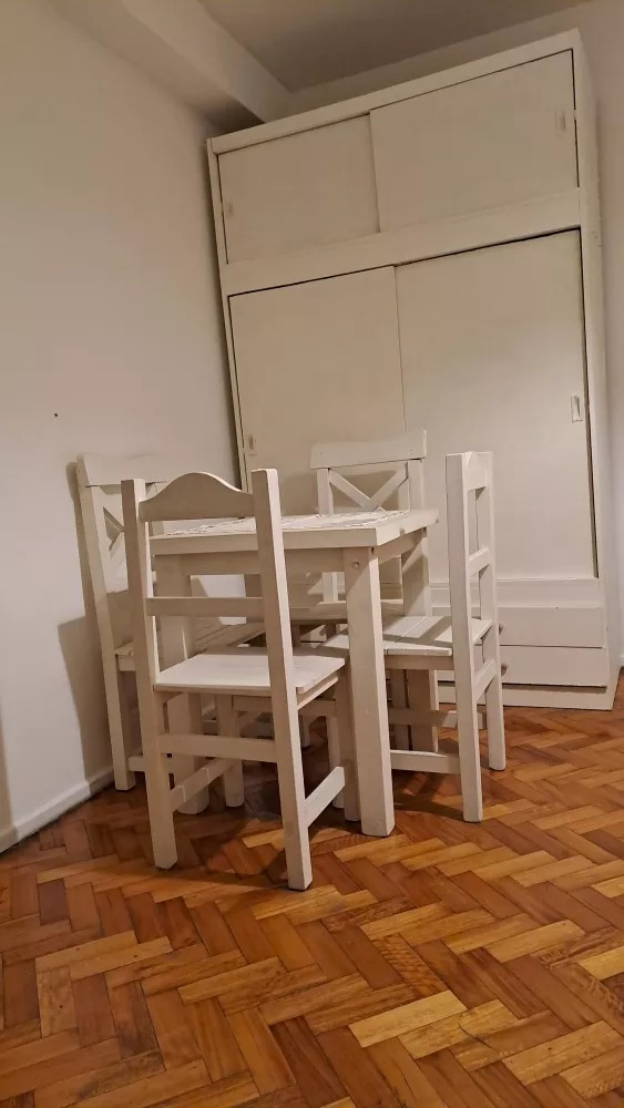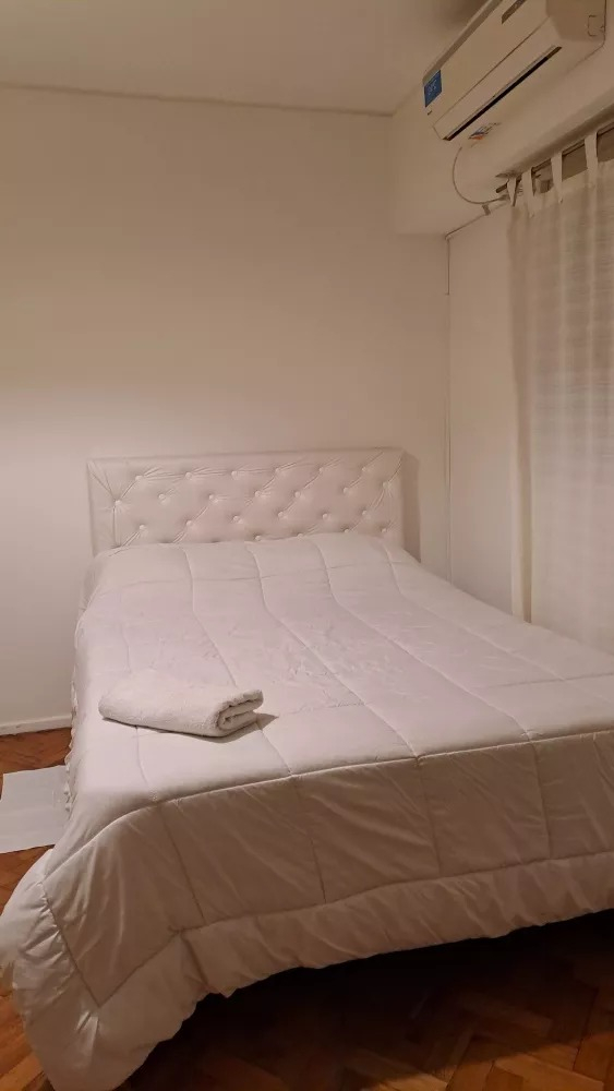 El departamento es amplio. La cocina está separada, está amoblada y totalmente equipada con cocina a gas, heladera con frizzer, microondas, electrodomésticos, utensilios de cocina y vajilla. Tiene una mesa de comedor con cuatro sillas, una cama tamaño matrimonial, placard con mucho espacio de guardado. Tiene aire acondicionado frío/calor. El baño es completo con bañera. Incluye blanquería.