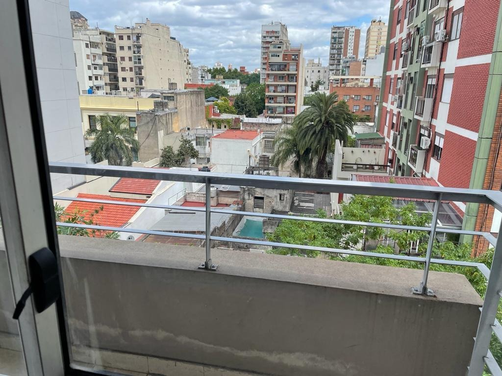 El departamento es muy luminoso gracias a un amplio ventanal con salida a un balcón con vista hacia el contrafrente.