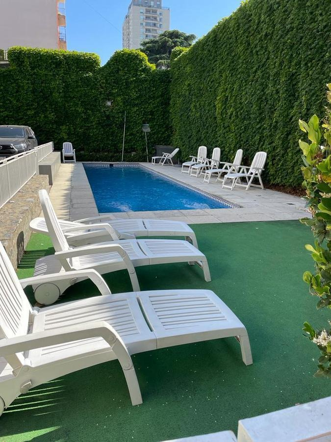 El edifico se encuentra en muy buen estado, cuenta con encargado y cámaras de seguridad 24 hs. Tiene también parrilla, pileta, gimnasio, laundry y hay posibilidad de alquilar cochera dentro del edificio.