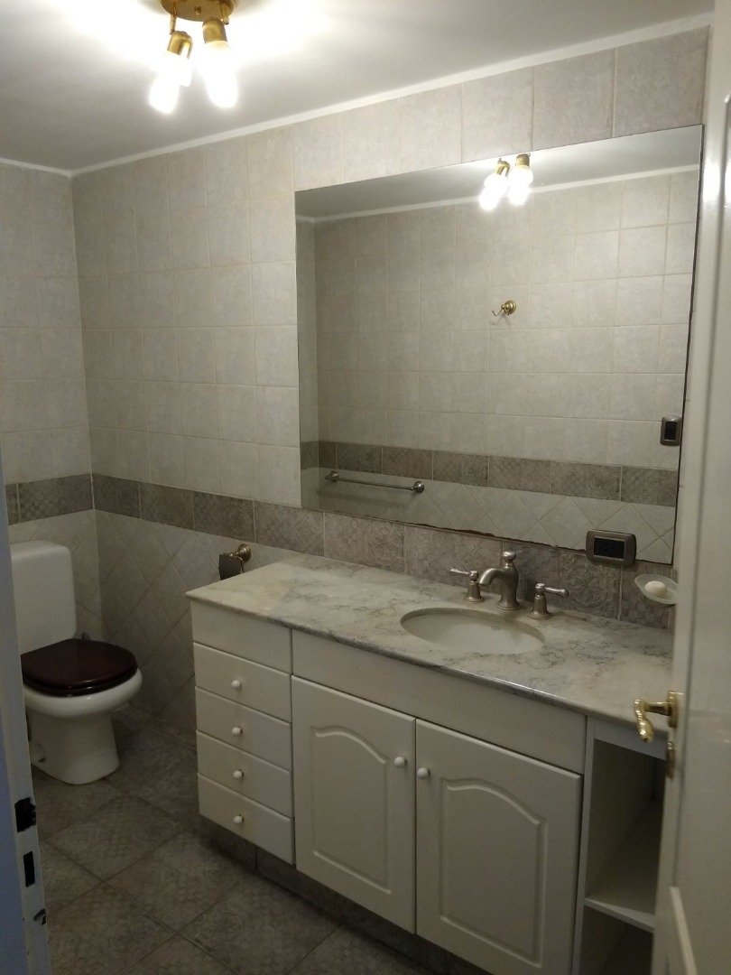 El baño posee una bacha doble (todo de marmol) con espejo imperioso, todo delimitado y sectorizado en cuanto a ducha y sanitarios.
