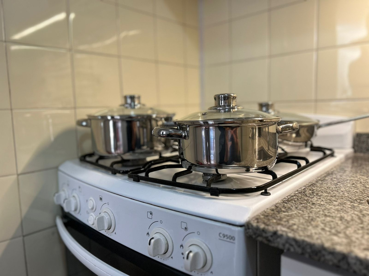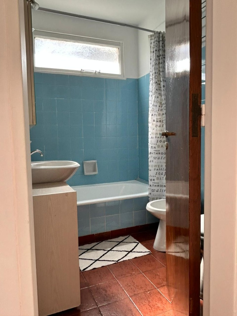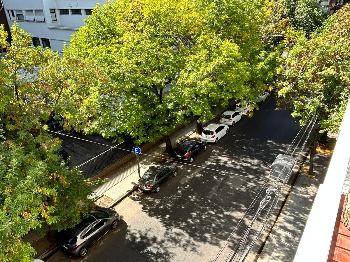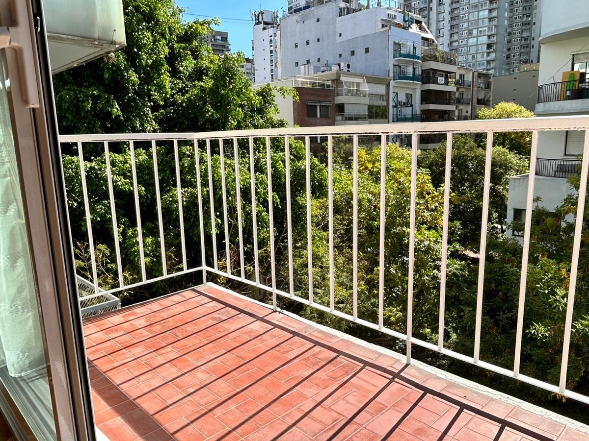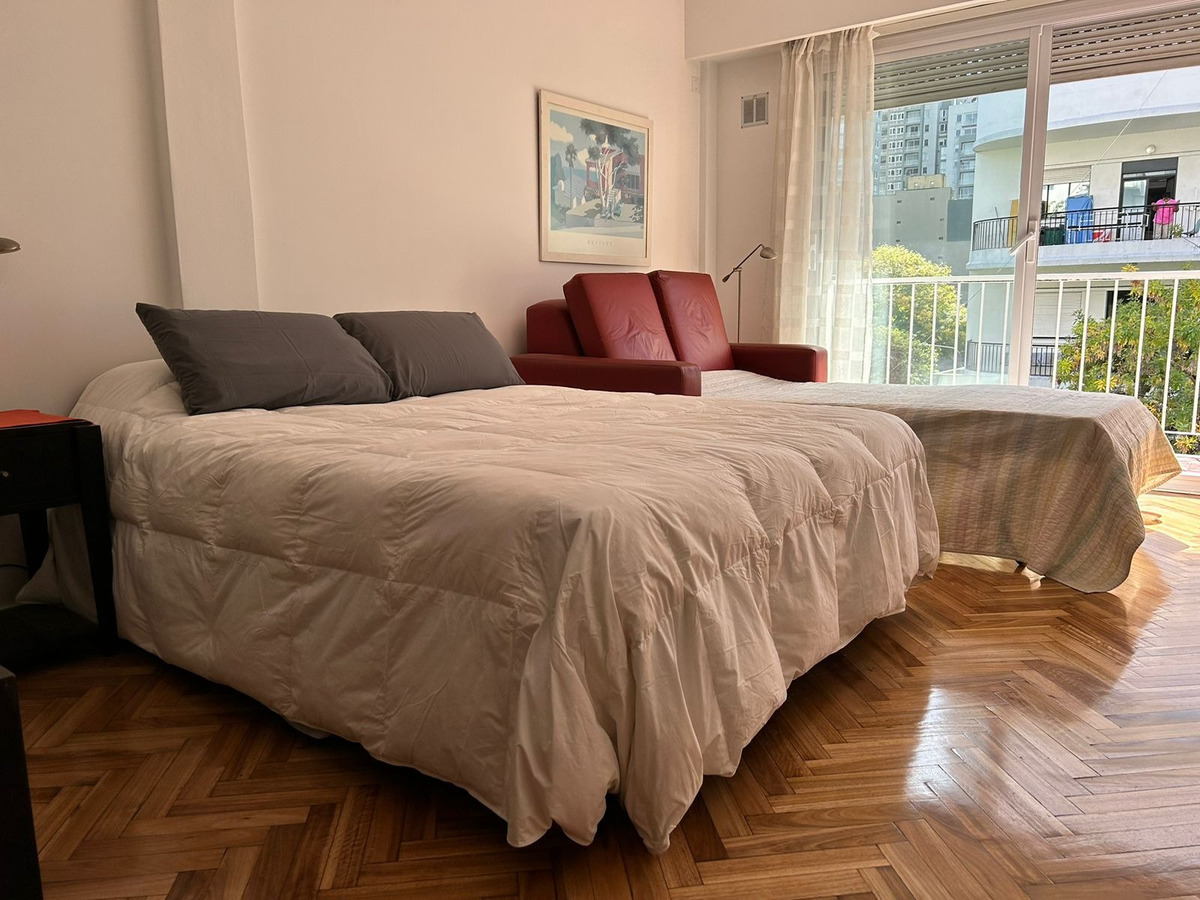 Departamento con balcón al frente, muy luminoso. El balcón tiene vidrio doble para un mejor aislamiento térmico. El ambiente principal se encuentra convenientemente amueblado para diferenciar 3 sectores: Sector con sofá cama, mesa baja y mueble con smart TV nueva de 42 pulgadas. En el medio Cama Queen c/ colchón nuevo y próximo a la cocina, el comedor con mesa y 4 sillas. Este ambiente, además, cuenta con un amplio placard de puertas corredizas y aire acondicionado. La cocina se encuentra separada mediante una división y esta equipada con horno a gas, extractor de aire, microondas, heladera con freezer, pequeños electrodomésticos, utensilios y vajilla. Tanto la cocina como el baño se encuentran recientemente acondicionados y el departamento recién pintado.
