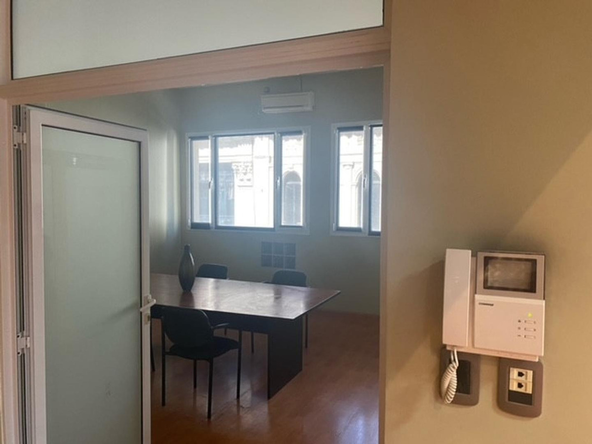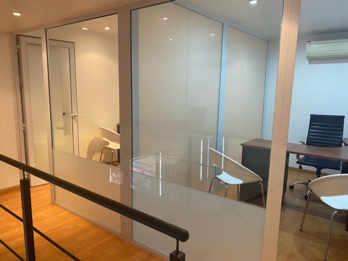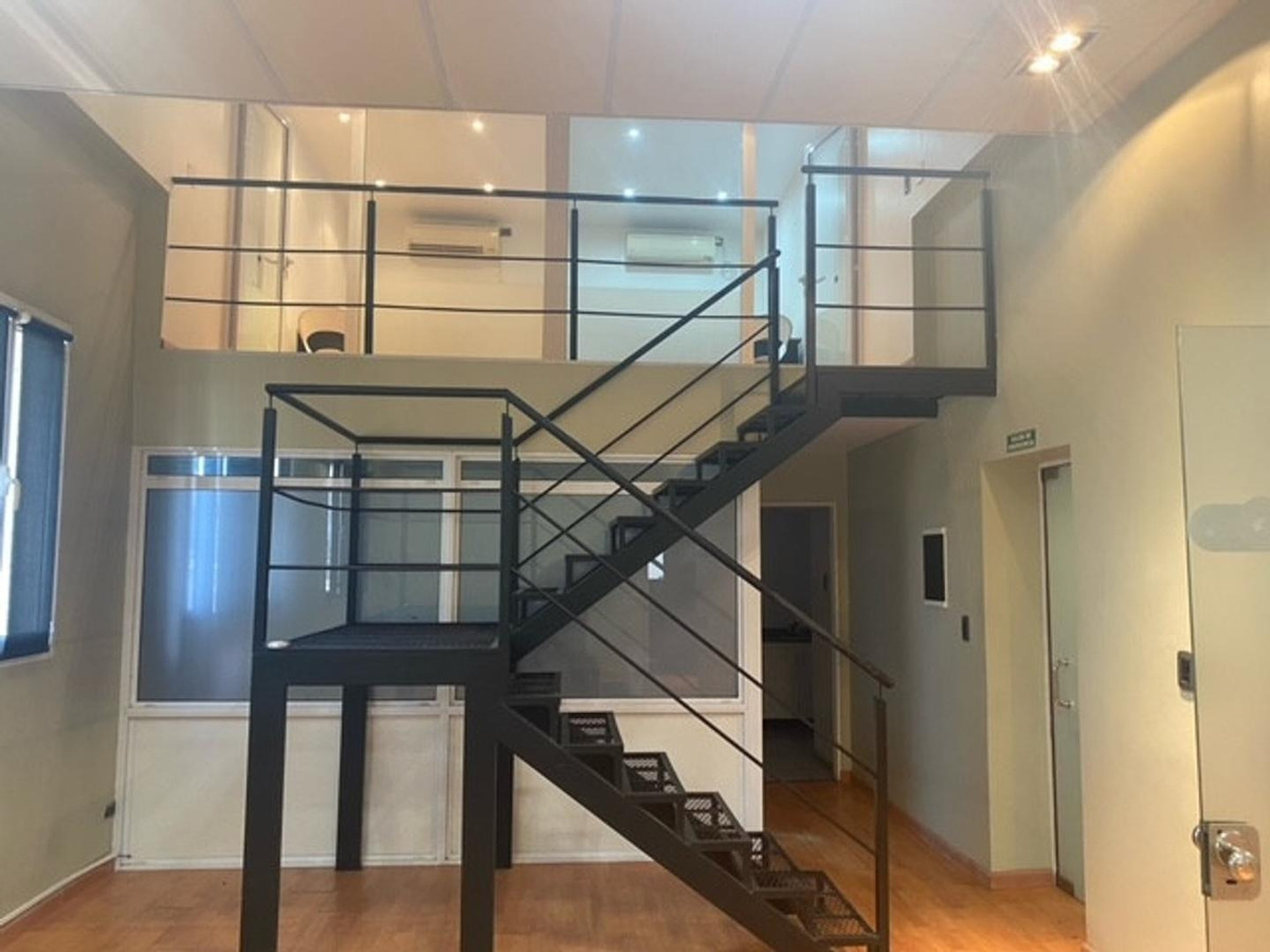 Generosa recepción, amplia zona de trabajo y sala de reunión. Cuenta con 2 despachos de gran tamaño, y otros dos despachos en altura, todo es a la calle con mucha Luz. 1 Baño.