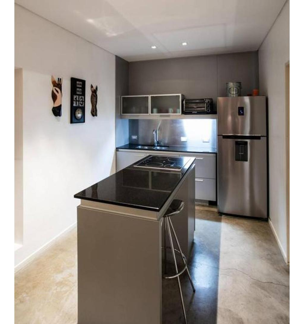 Los ambientes se encuentran bien determinados. Cuenta con sector living con cómodo sofá en L, comedor con mesa y sillas para 6, cocina totalmente equipada con espacio de guardado, heladera con freezer, horno eléctrico, anafe y barra desayunadora tipo isla. Baño completo con mesada y dos bachas, bañera con hidromasaje. Espléndido placard vestidor. Dormitorio con cama doble.