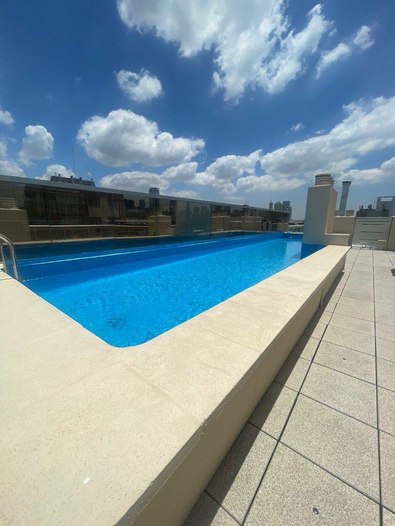 El edificio cuenta con gimnasio, solarium, sauna y piscina descubierta en la terraza, desde donde aprecia la vista panorámica de toda la ciudad.