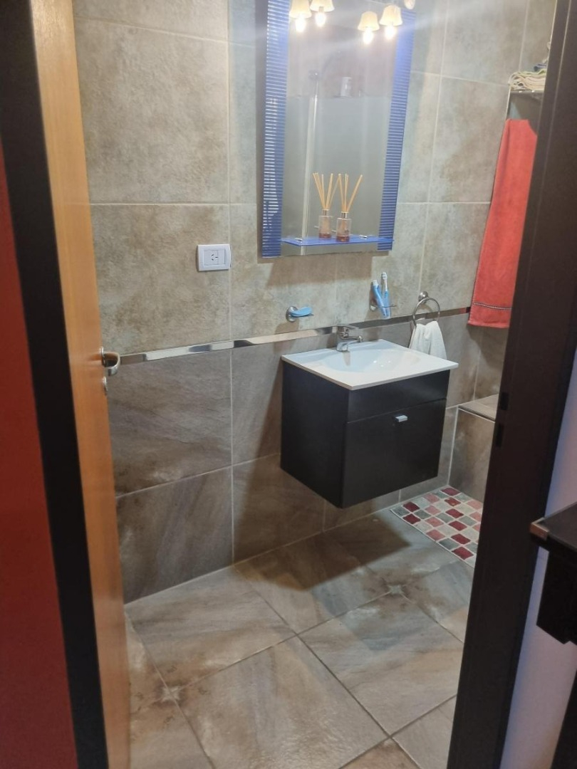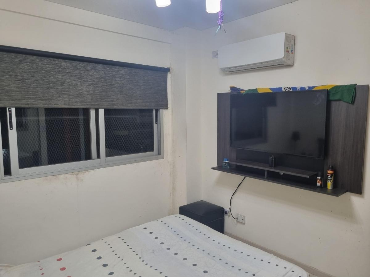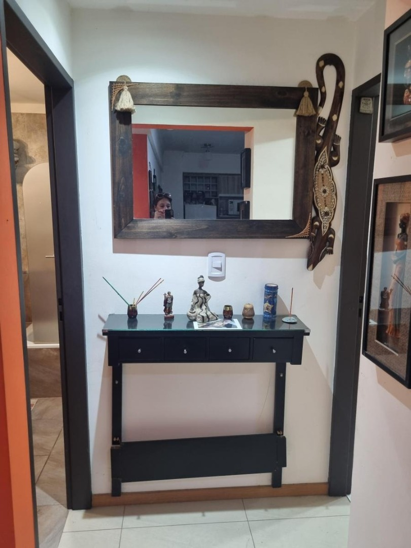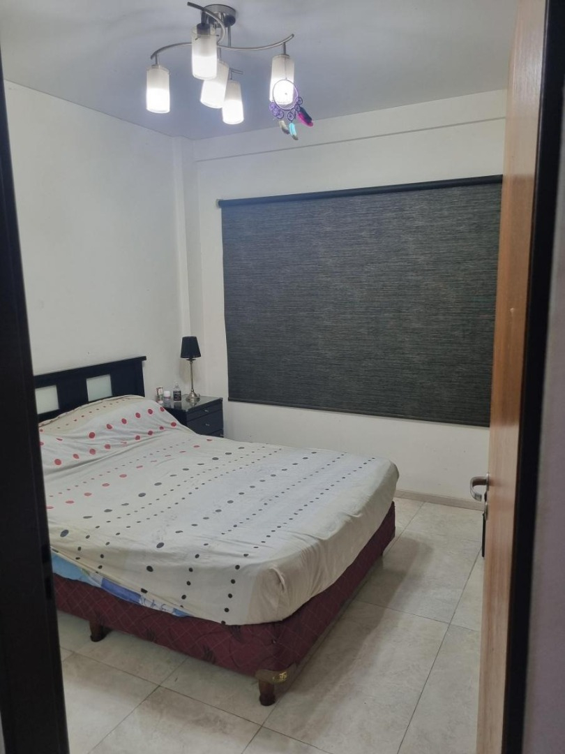 El dormitorio cuenta con una hermosa cama matrimonial lo que a su vez posee placard espejado hasta el techo.