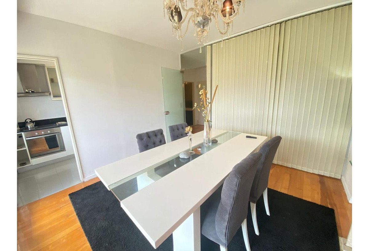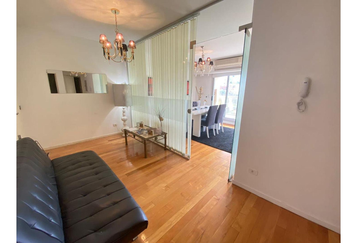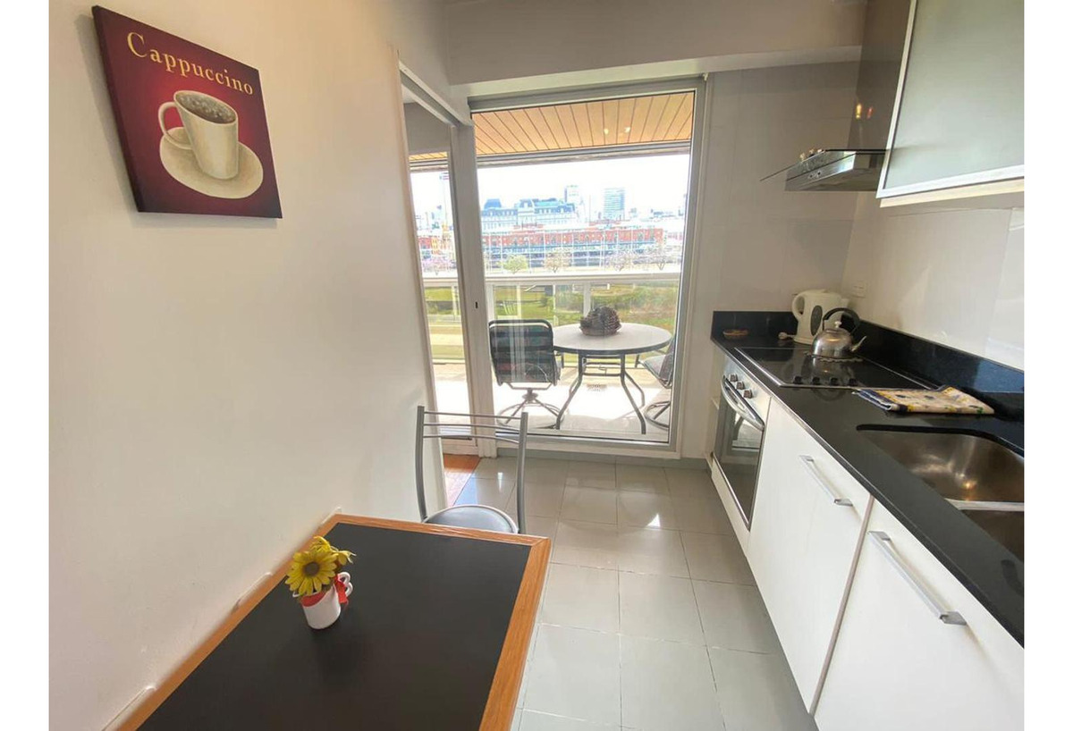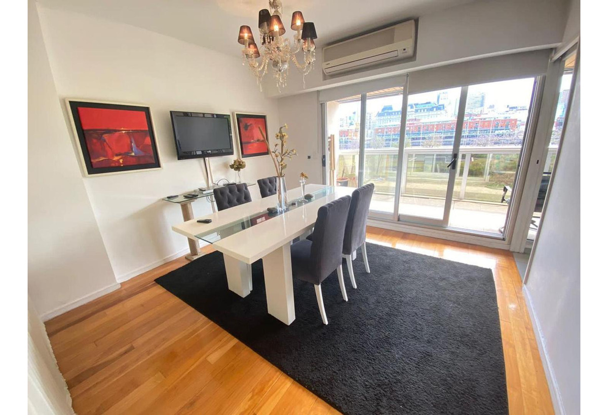 Impecable living-comedor espacioso con amplio ventanal con buena vista a Puerto Madero y mas específicamente al rió, totalmente amoblado, cuenta con toilette para sus invitados.