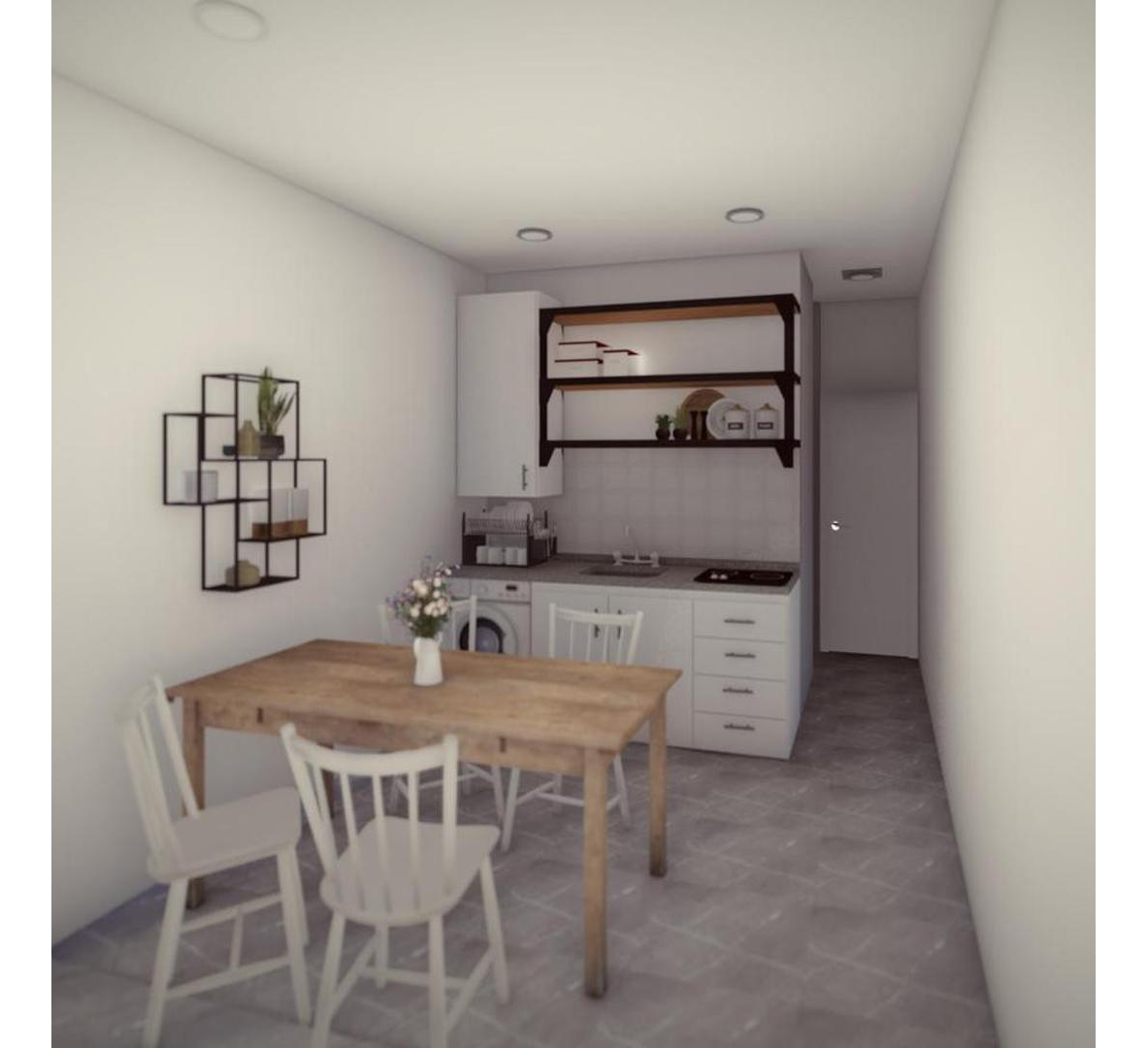 Contara con instalación lista para colocar 2 aires acondicionados, en la cocina habrá espacio disponible para colocar lavarropas de carga frontal, termotanque eléctrico de 80 litros y bajo mesada con puertas, cajonera y alacena sin puerta, la mesada va a ser de mármol gris mara con anafe eléctrico de vidrio vitroceramico incluido.
