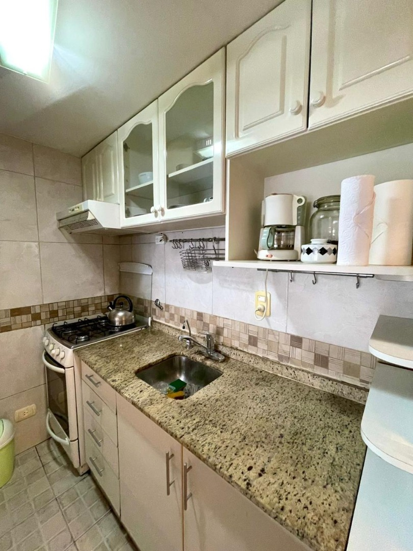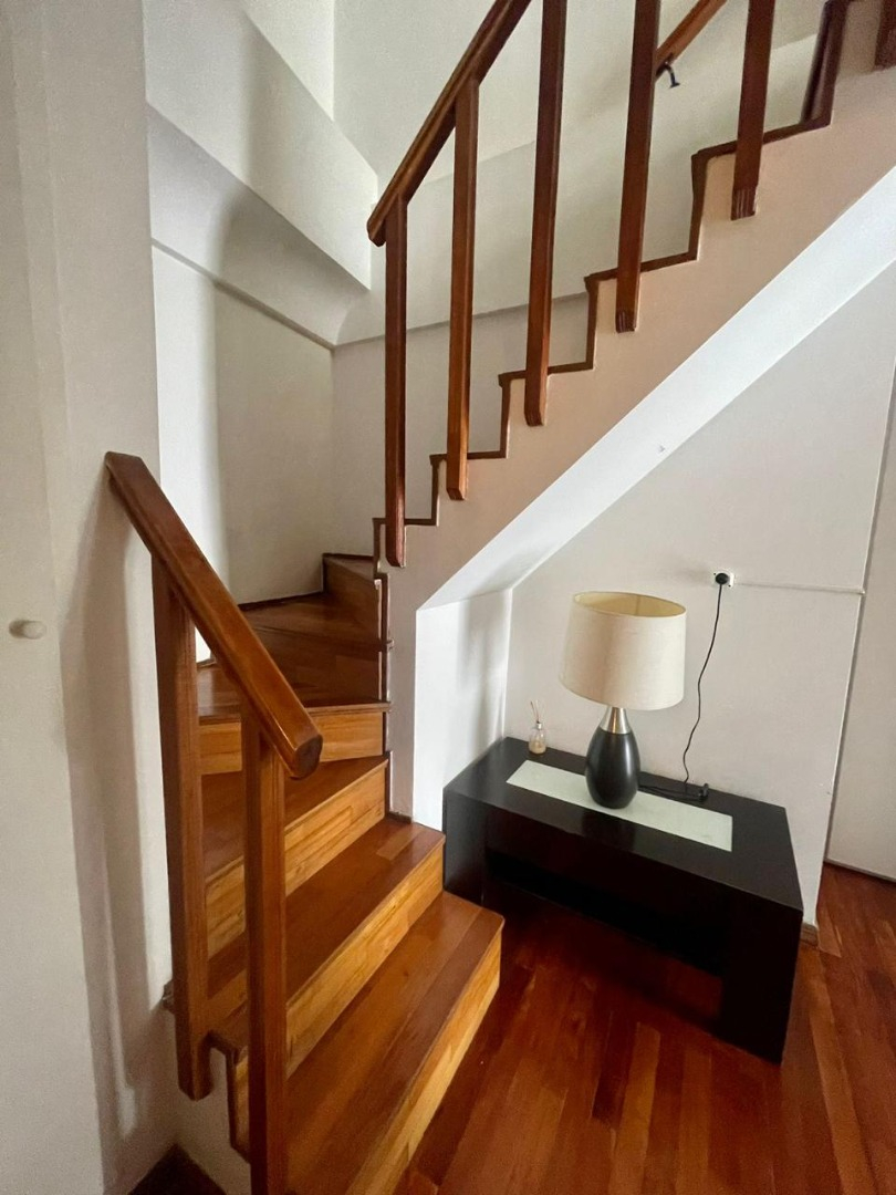 El departamento cuenta con dos pisos en la planta baja se encuentra un living amplio, cocina semi esperada totalmente equipada, un toilette y balcón. En el planta de arriba se encuentra el dormitorio en suite, con cama matrimonial y una cama individual.