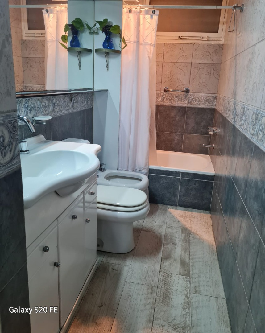 Escritorio, living comedor Baño completo con bañera. Tiene lavadora.