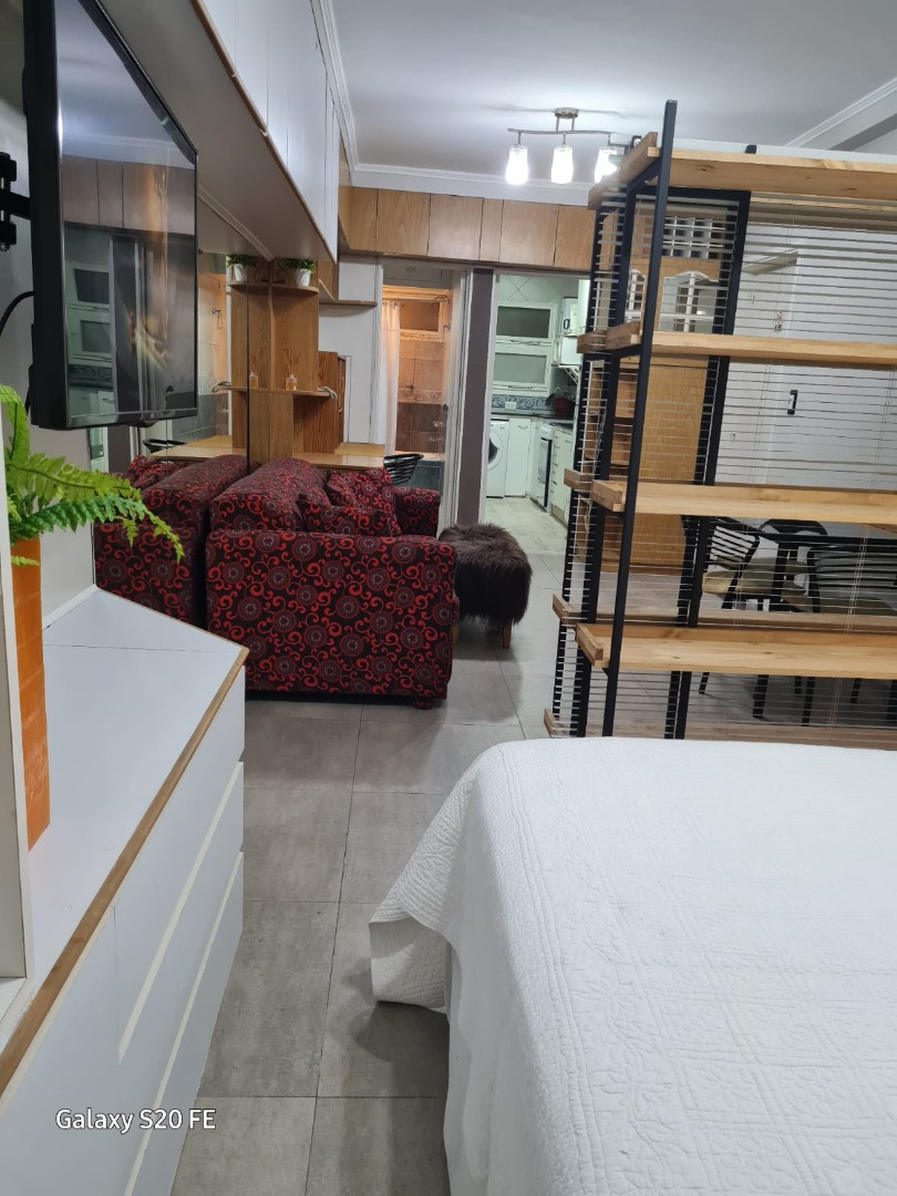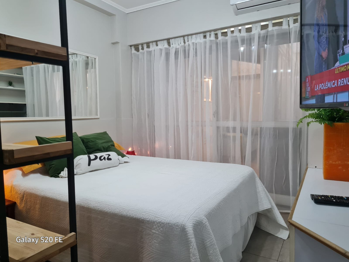 Monoambiente dividido, muy cómodo. Posee una cama queen y un sofa cama doble. Esta equipado con TV led, internet, teléfono, horno, heladera con freezer, microondas, electrodomésticos, utensilios de cocina y vajilla.