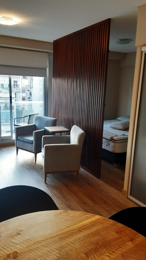 Con dos años de antigüedad toda vista abierta con aire acondicionado y cortinas dobles en los 2 ventanales de screen y blacaut.de excelente calidad.