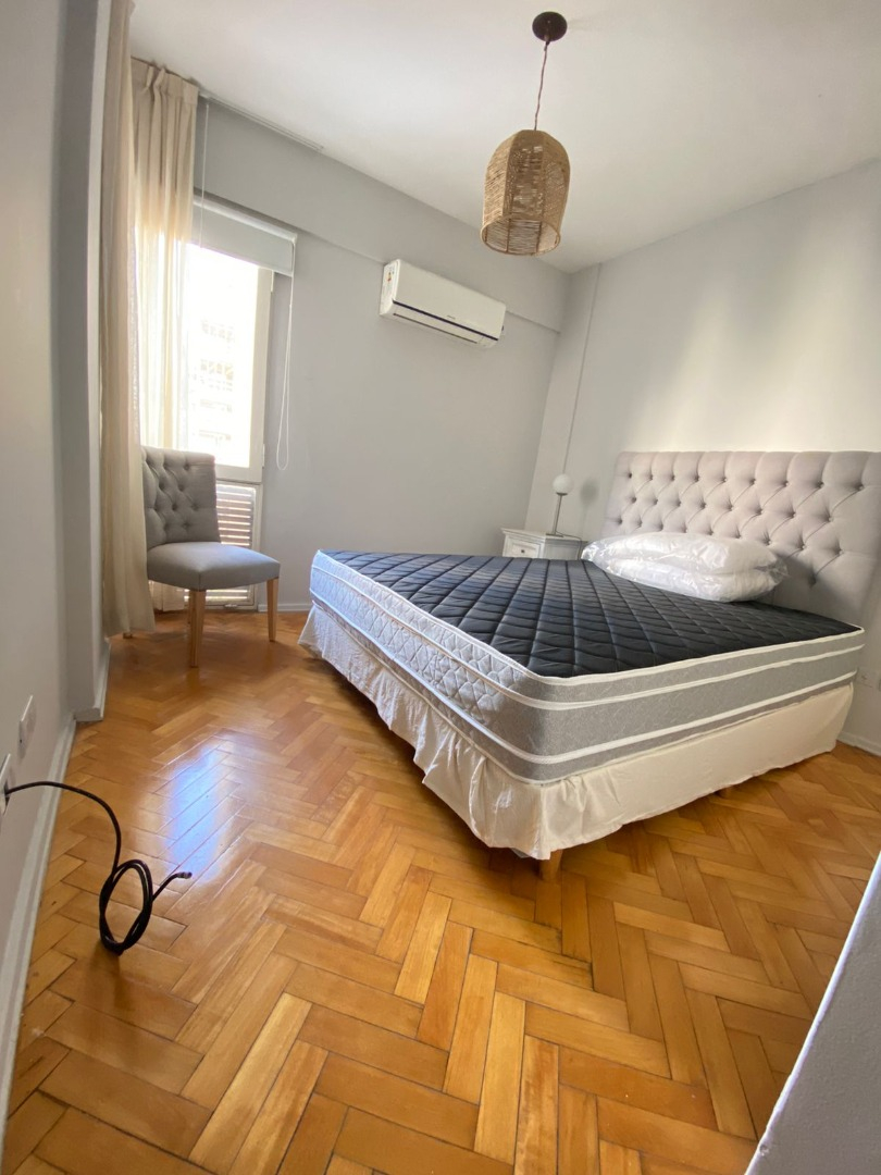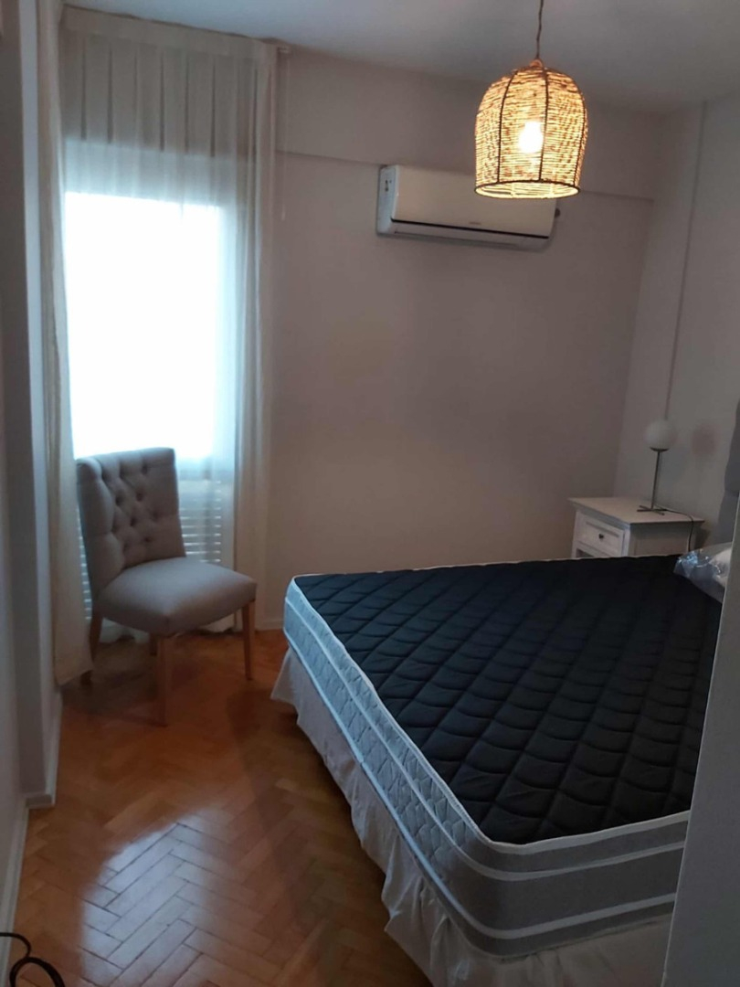 Dormitorio principal con Sommier dos plazas, amplio placard, aire acondicionado. Segundo dormitorio con cama simple y escritorio. Baño completo con bañera.