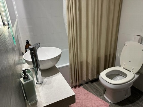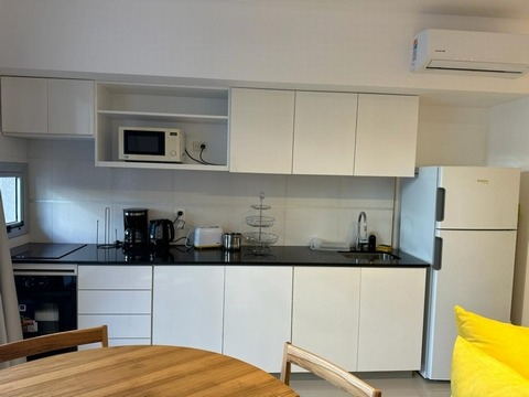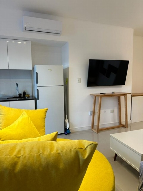 A la hora de entrar se encuentra con una cama matrimonial ,mesa de luz ,placard integrado y aire acondicionado (frio-calor)