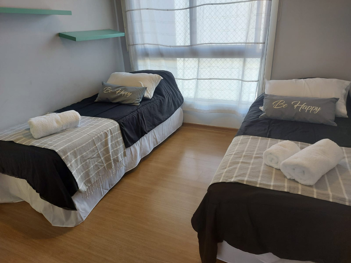 Habitación secundaria con dos camas de una plaza, aire acondicionado.