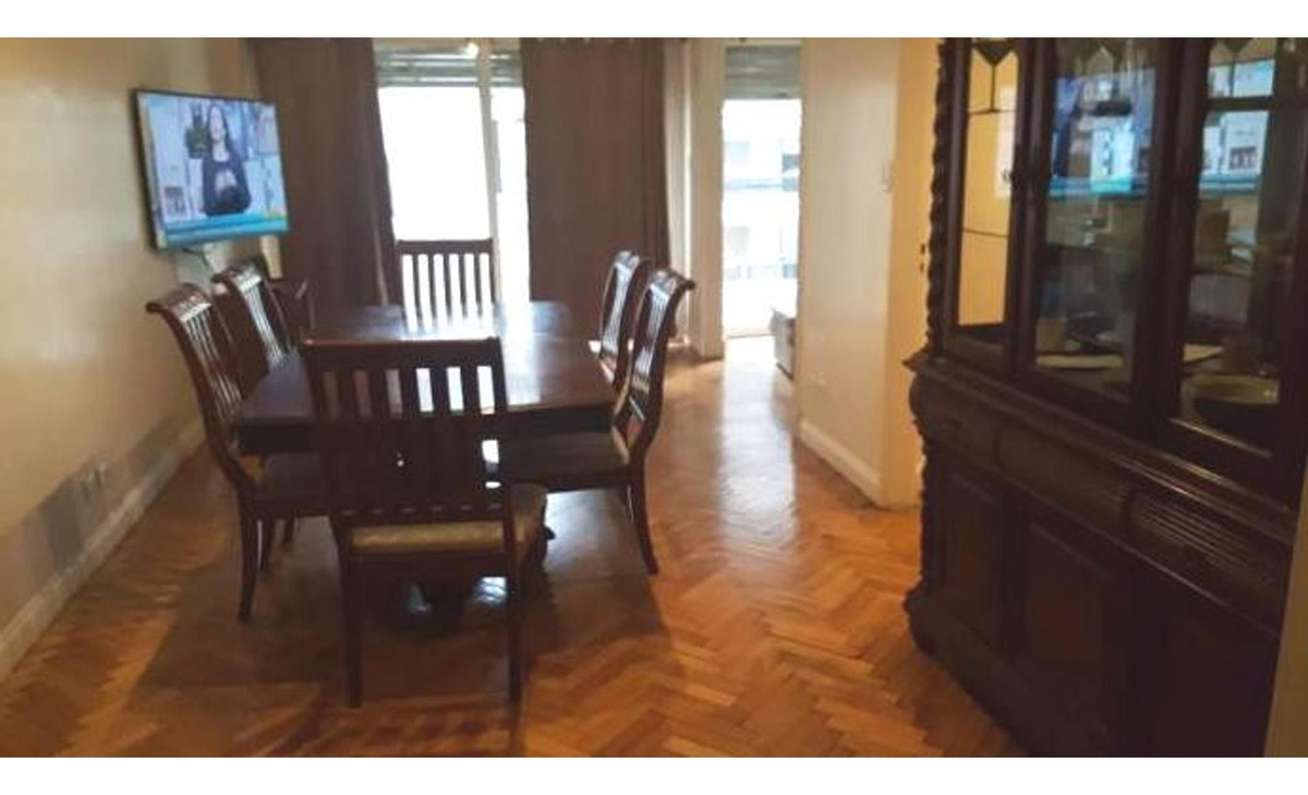 Las habitaciones cuentan con somier nuevos de dos plazas y otra con un somier nuevo de una plaza. Todas poseen un amplio placard, doble vidrio anti ruidos , sillones de cuero y estufas.Está totalmente amoblado y posee balcón corrido a la calle.