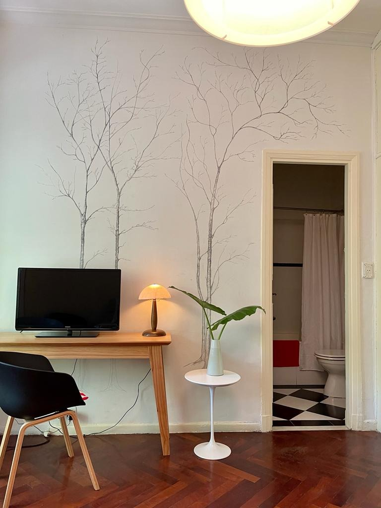 El departamento cuenta con dos camas individuales, mesa comedor, TV y aire acondicionado.