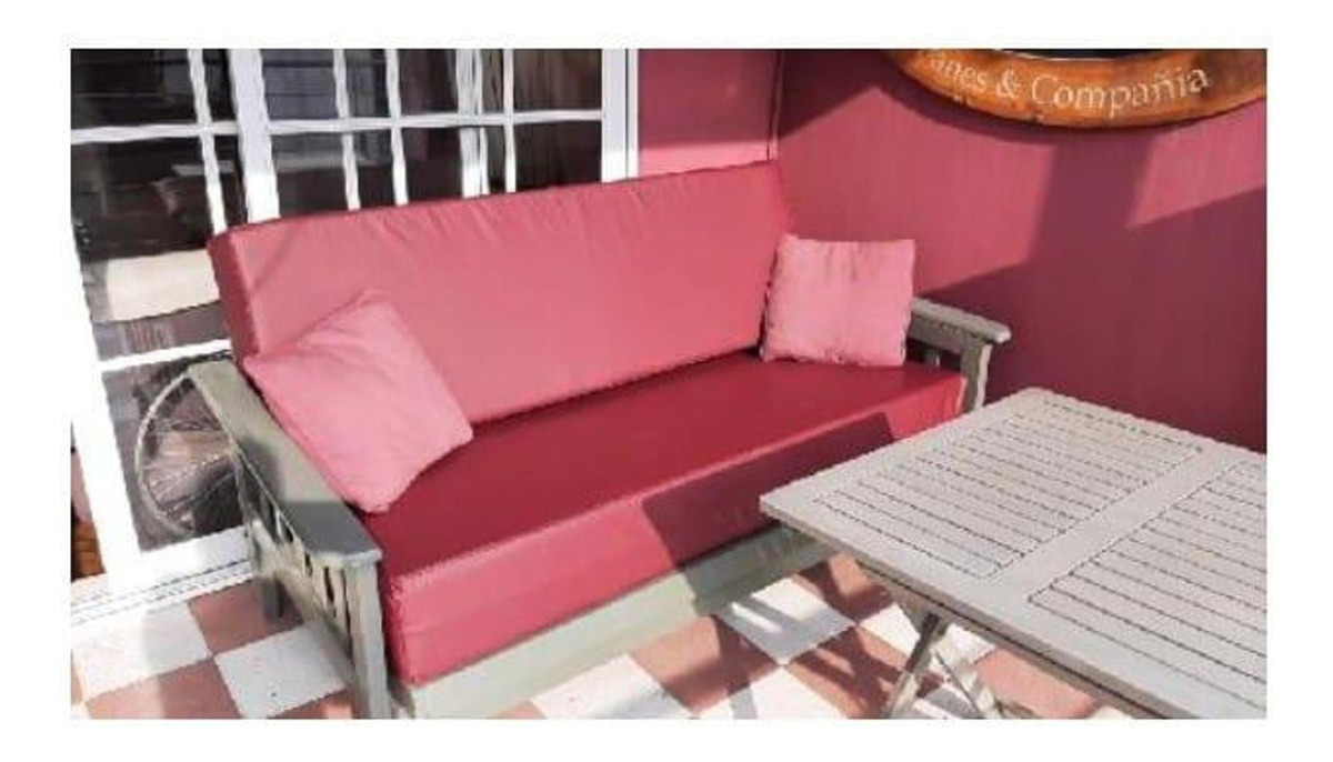 Hay mesa con sillas, sillón de dos cuerpos y está totalmente equipado.