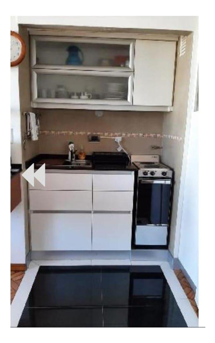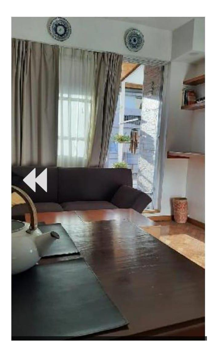 Tiene un hermoso comedor con cocina integrada, banquetas y heladera con freezer.