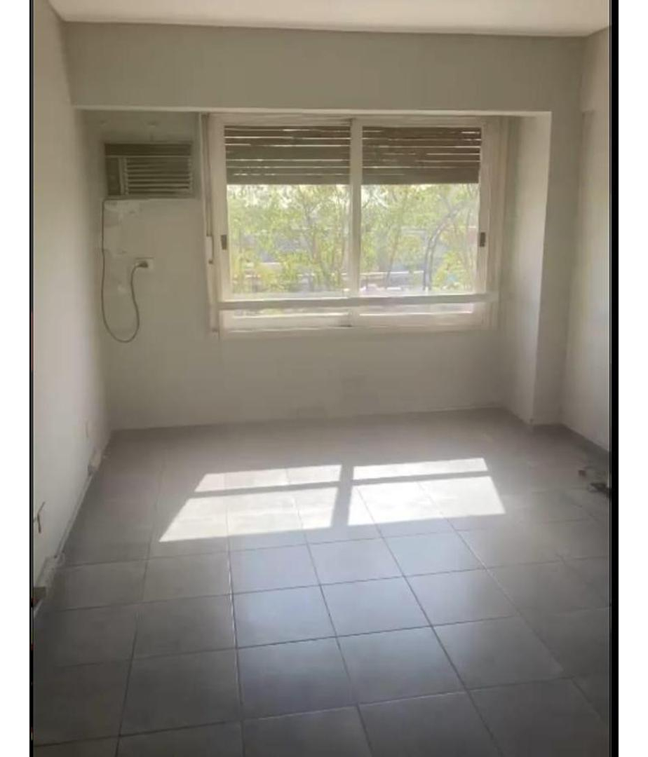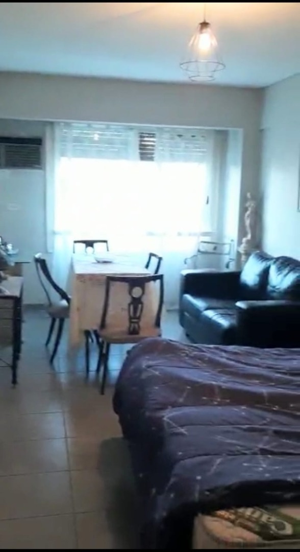 El departamento está ubicado en piso medio, tiene una linda vista al frente y se compone de un ambiente amplio con baño completo refaccionado a nuevo, con bañera y vanitory, cocina integrada también remodelada sobre el pasillo tipo kitchenette con moblaje de bajo mesada, cocina con dos hornallas y horno, campana, heladera bajo mesada y vajilla para dos personas.