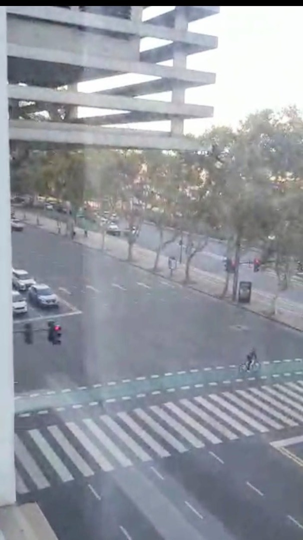 No posee balcón pero cuenta con amplio ventanal que permite colgar plantas y ofrece una agradable vista a la avenida .