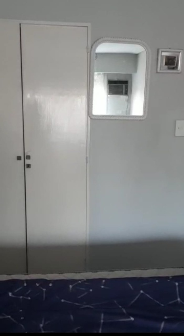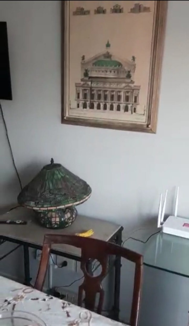 Amoblado con 2 camas con colchones Luis 15 que se unen, sillón de cuero de dos cuerpos, mesa de vidrio pequeña con lámpara, mesa amplia con sillas, televisor 32" BGH smart, cortinas , blancos y aire acondicionado solo frío.