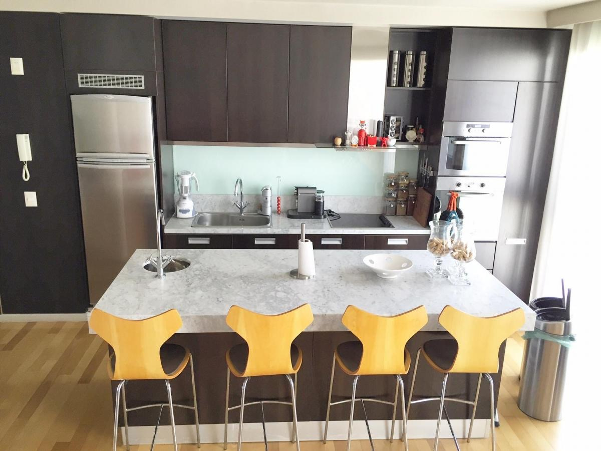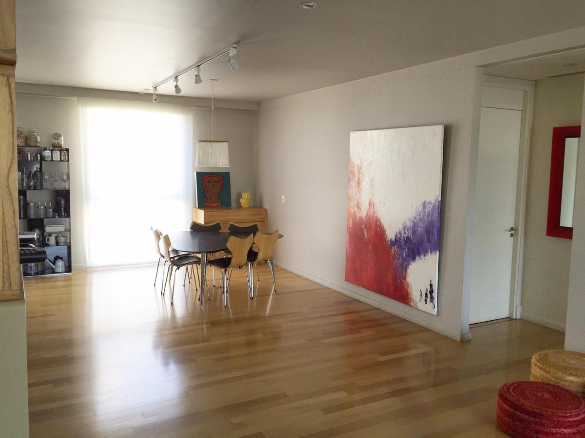 El deparamento cuenta con amplio living luminoso con sillón grande, mesa de luz, mueble de televisión, con Tele. Cuenta con salida directa al balcón con sillón con vista al Rio de Puerto Madero, cuenta con oficina amplia equipada. Cocina grande con barra desayunadora, sillas, bajo mesada, alacena, heladera, horno, cafetera, lava vajillas, utensilios de cocina. Comedor con mesa y sillas amplio y muy luminoso.