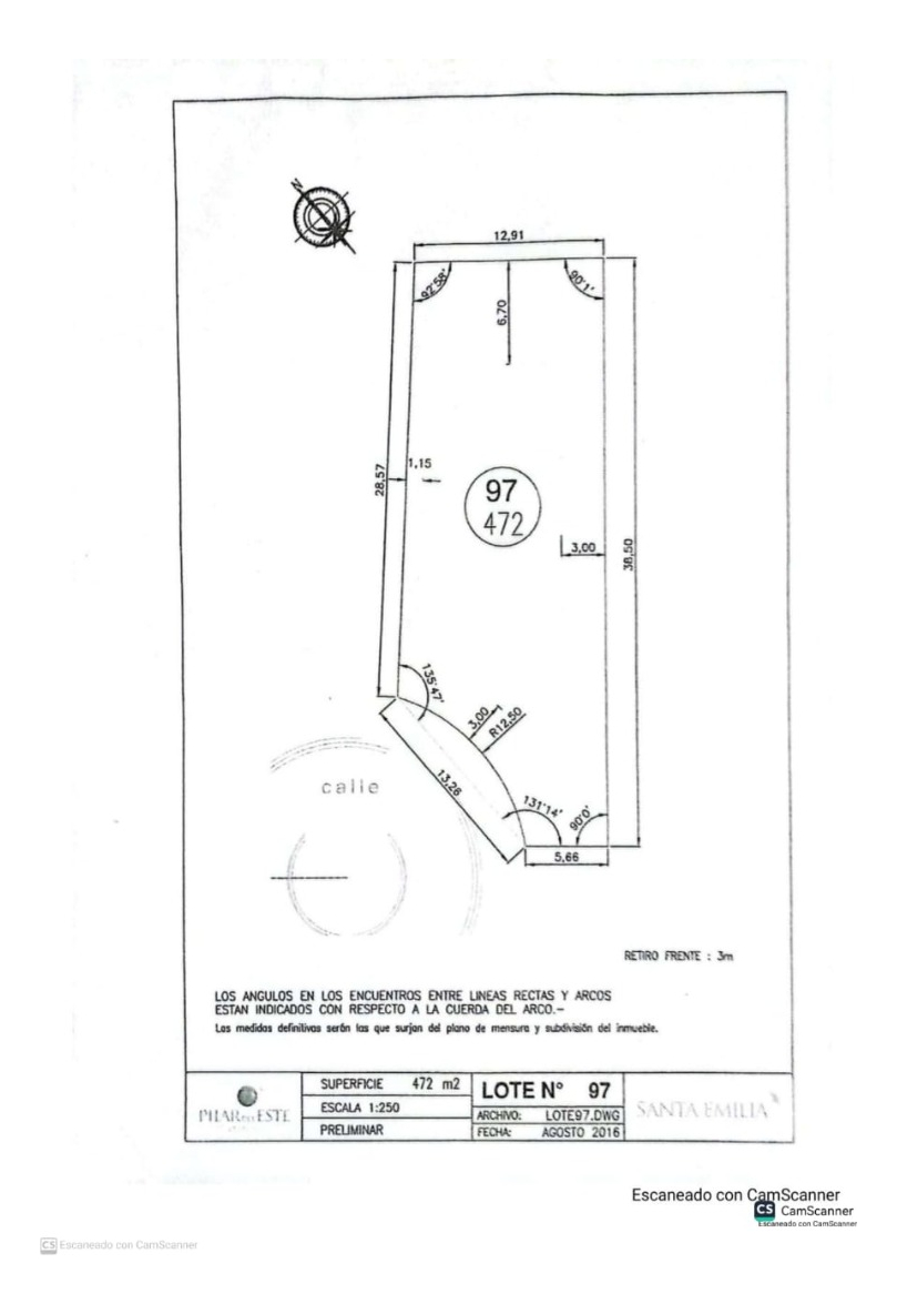 Ubicación perimetral. Las dimensiones son: frente: 13.26 m y 5.66; fondo: 12.91 m; lateral izquierdo: 28.57 m; lateral derecho: 38.5 m. Sup total: 450 mts 2 .