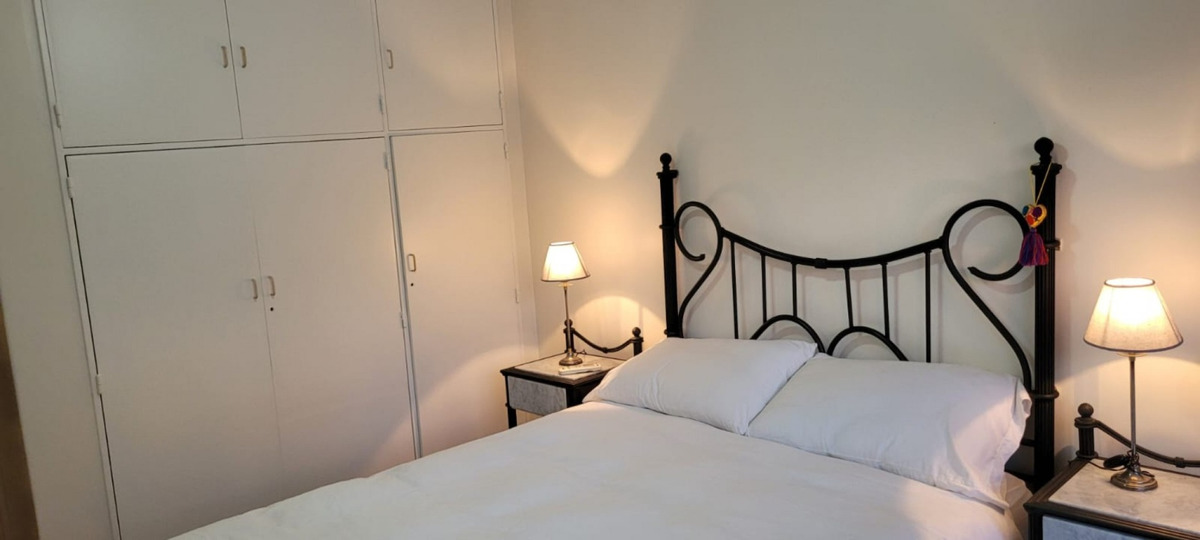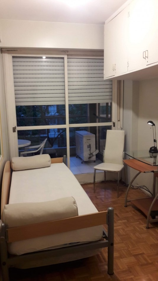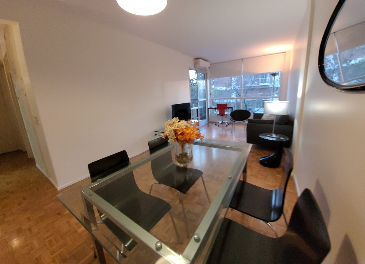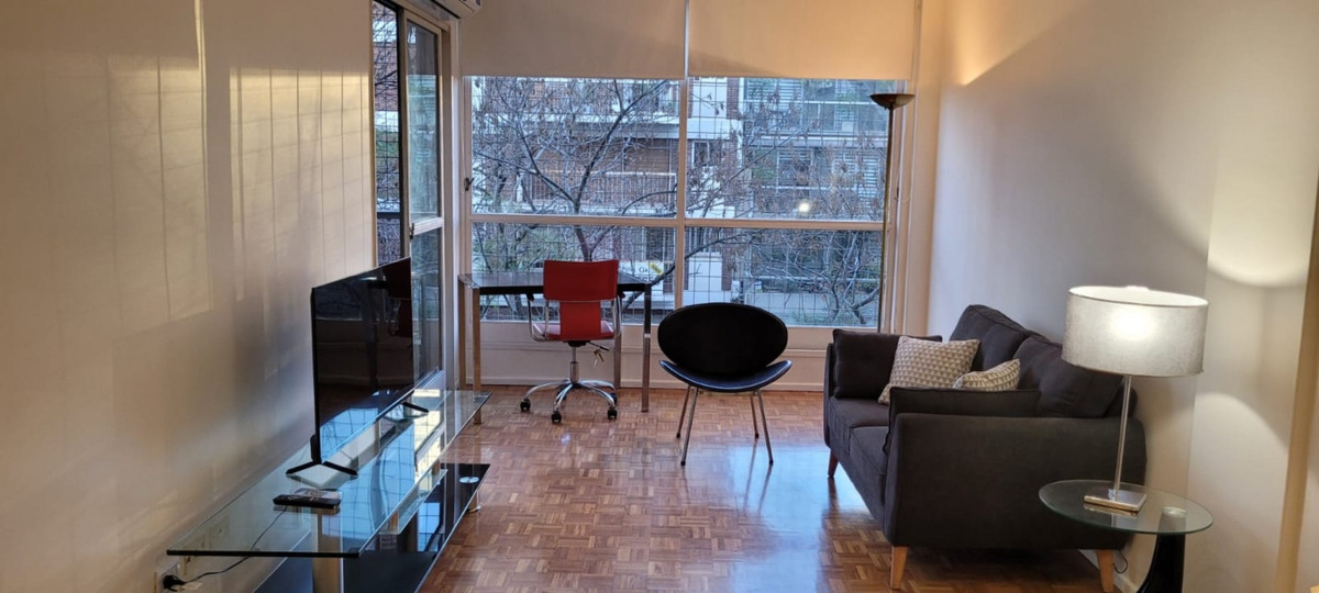 El departamento es un semipiso muy luminoso gracias a amplias ventanas en todos los ambientes y ventanales tanto en el living como en los dormitorios con salida hacia un balcón terraza con vista hacia la calle. La cocina está separada, amoblada con alacena y bajo mesada y completamente equipada con heladera, cocina, electrodomésticos, utensilios de cocina y vajilla. El área del living comedor cuenta con mesa de comedor con sillas, sofá, mesas de apoyo, escritorio, aire acondicionado y TV led. El dormitorio principal cuenta con cama tamaño matrimonial, mesas de luz y placard amplio. El segundo dormitorio cuenta con diván y cama abajo, mesa de luz, escritorio y espacio de guardado. El baño es completo con bañera. El departamento cuenta con aire acondicionado y calefactor. Tiene lavadora.