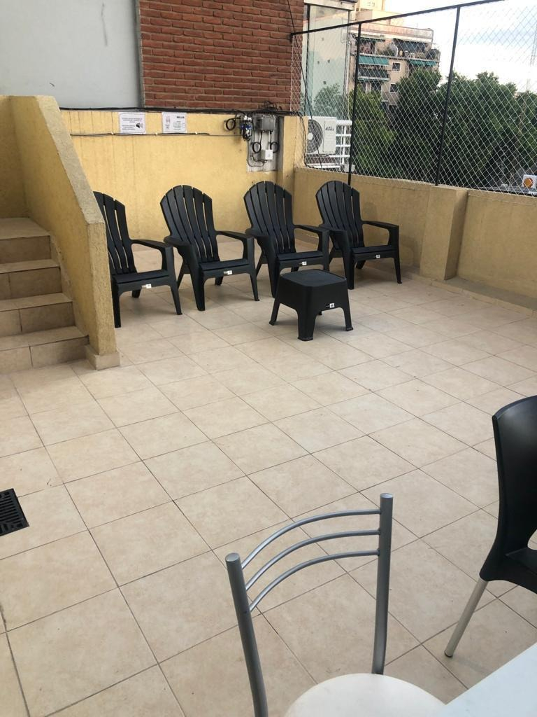 En edificio con seguridad, solarium, terraza con mesa, silla, reposeras con parrilla a carbón, fogonero, y laundry