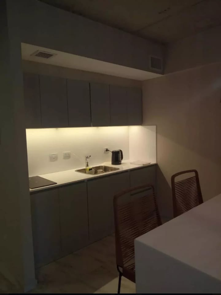 Cocina integrada, moderna, muy bien equipada con todos los electrodomésticos nuevos, vajilla completa mueble de alto y bajo mesada con luz led.