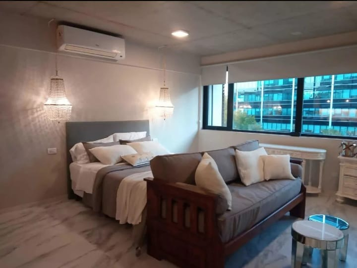 El departamento se compone de un amplio y cómodo ambiente . Se encuentra totalmente equipado a nuevo, con detalles en gama de colores cálidos, muy agradable a la vista . Posee pisos de parquet, cortinas de roller black out,