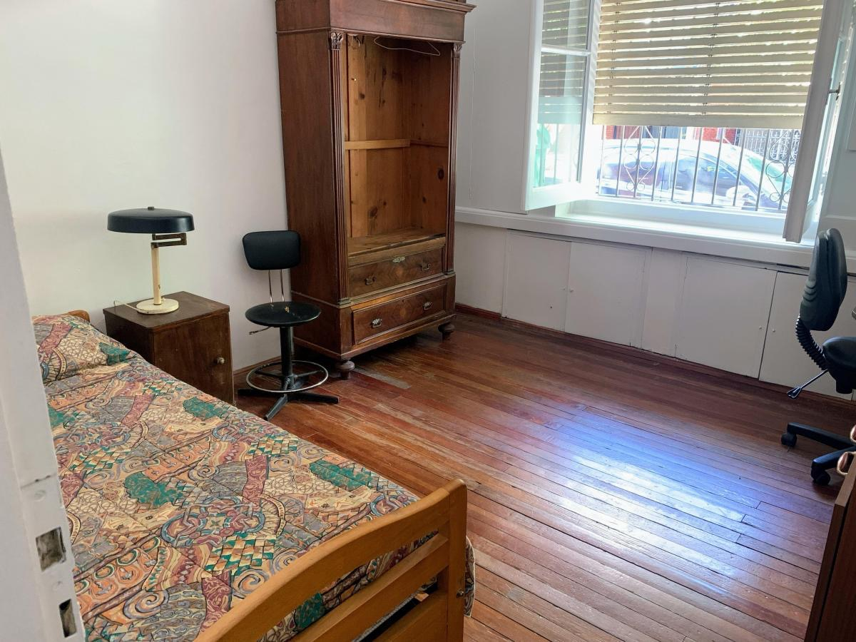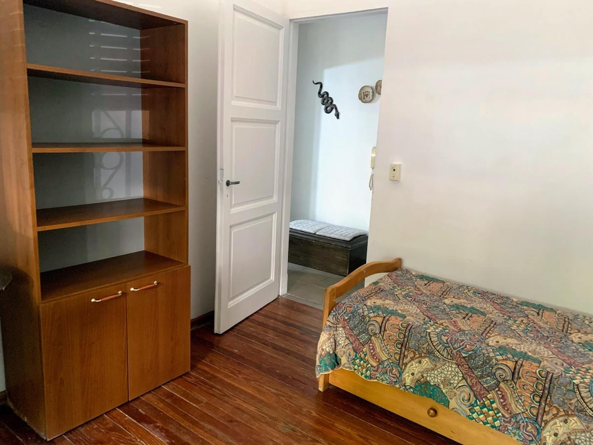 Habitación principal con cama matrimonial con sabanas, acolchado, almohadas, mesa de luz, ventana muy luminosa, con placard, pisos de parquet, aire acondicionado, televisión. Habitación secundaria cama de una plaza, ropero chico, mesa de luz, escritorio con silla, ventana muy luminosa,