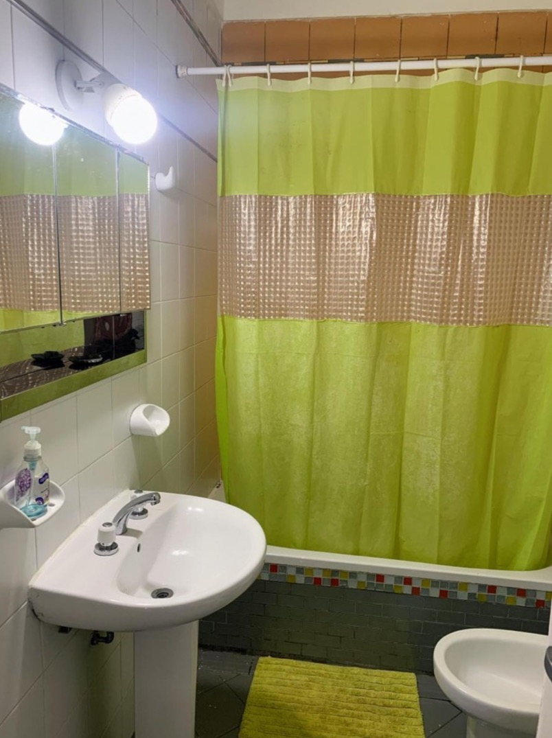 Baño con bañera, lava manos, cortina, botiquín con luz. Cuenta con lavarropas automáticos nuevo.