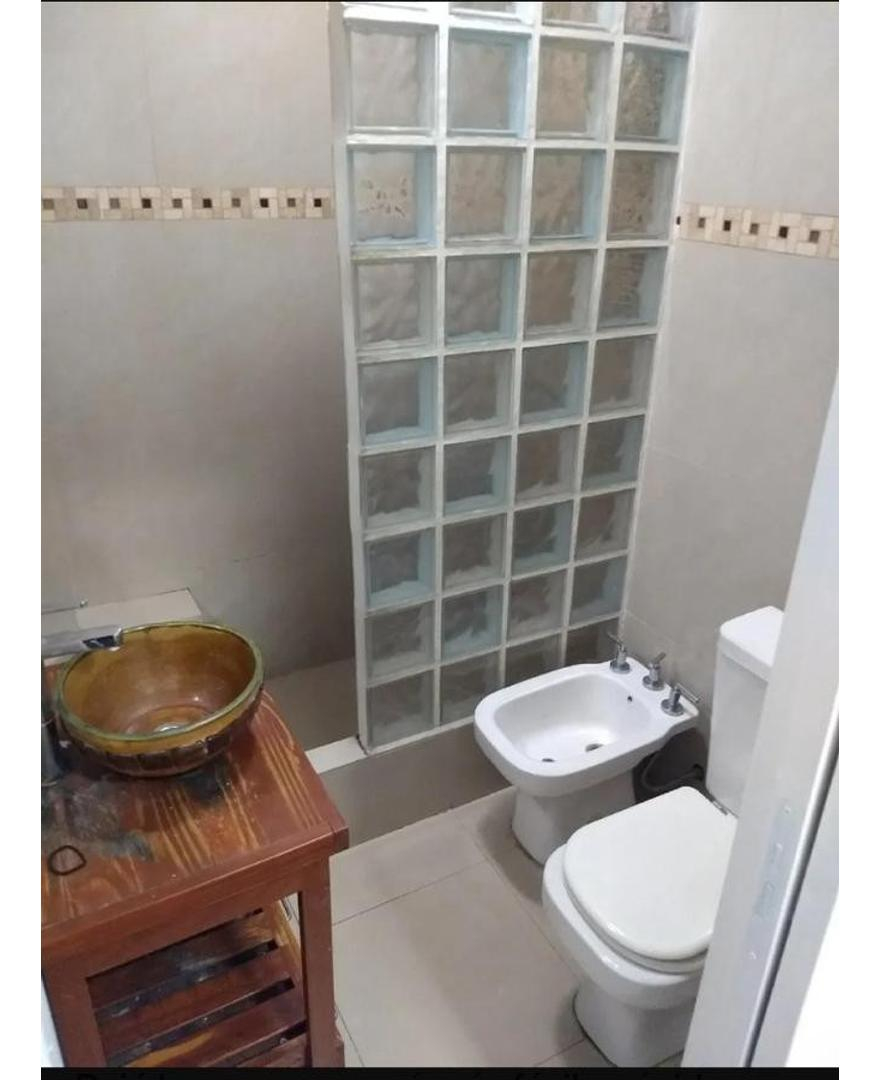 El Baño es completo, con una ducha moderna y pared de ladrillos de vidrios. Además cuenta con toilette de recepción, completo y muy acogedor.